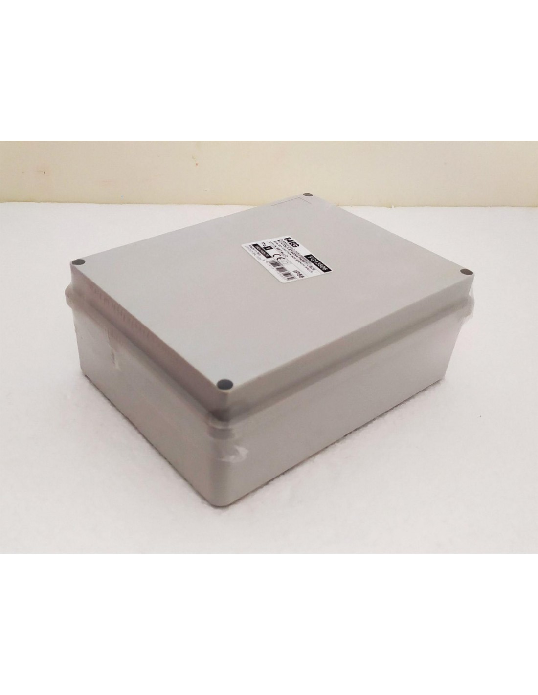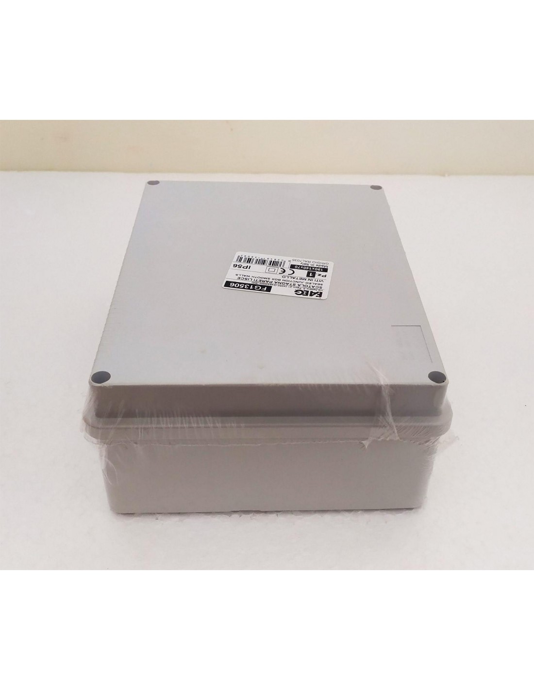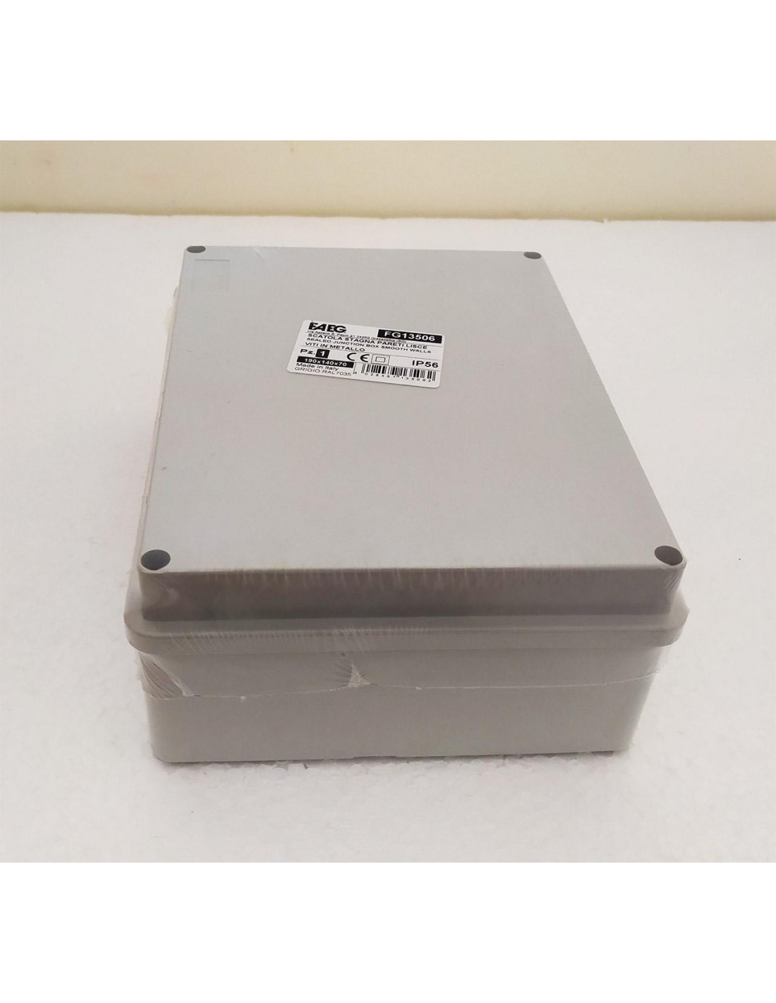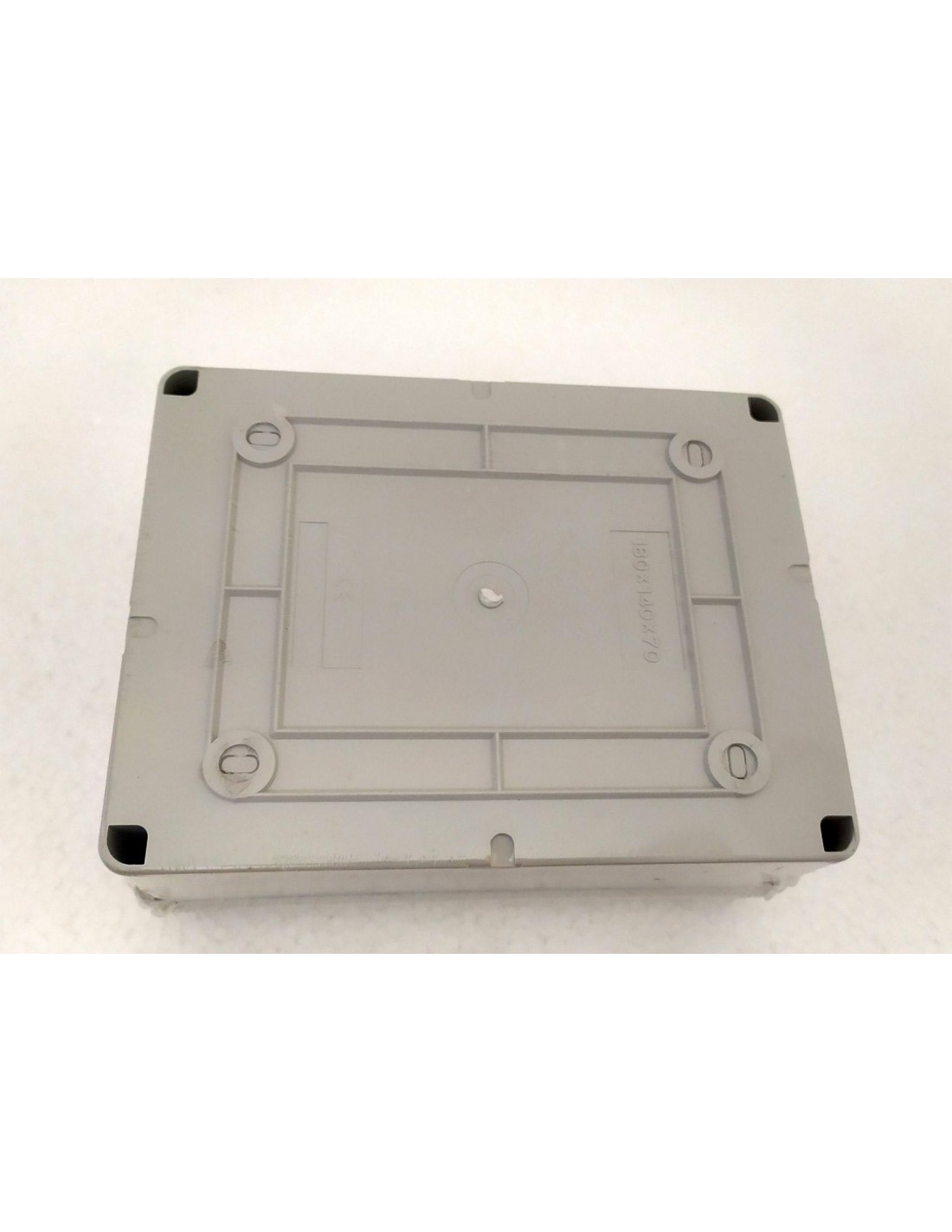 Cassetta di derivazione stagna con pareti lisce 190x140x70 IP56, con viti in metallo, di colore grigio.