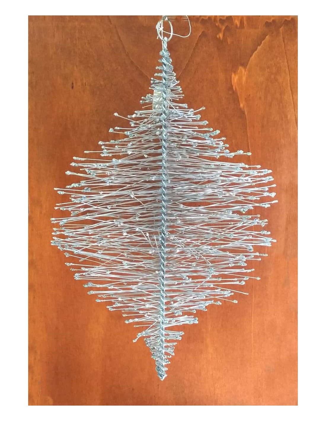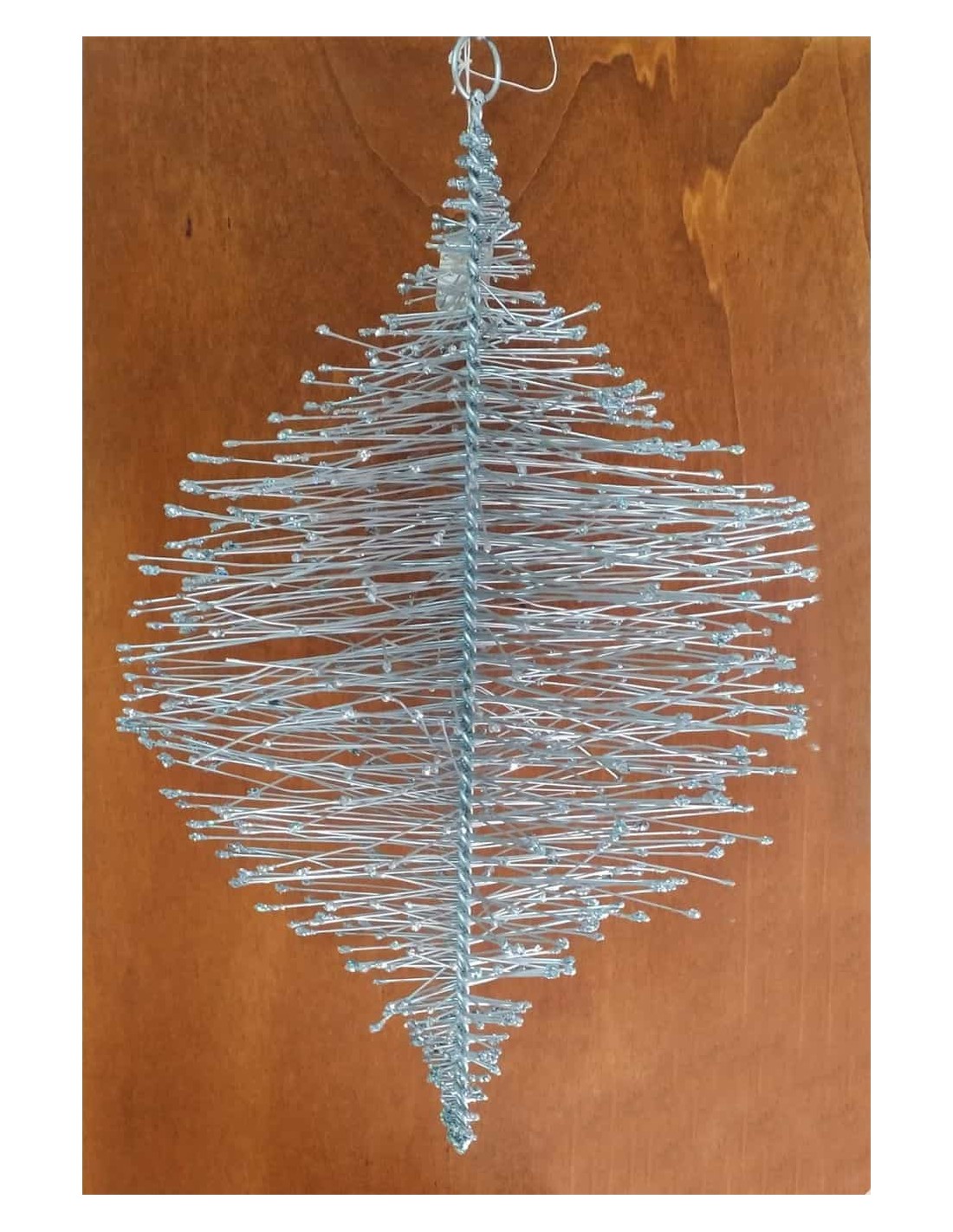 Goccia metallica con brillantini, dotata di anello per essere agganciata a soffitto. Questa goccia metallica con brillantini è utile per animare locali e feste serali, emettendo un effetto luccicante e multicolore se illuminata da un fonte luminosa.