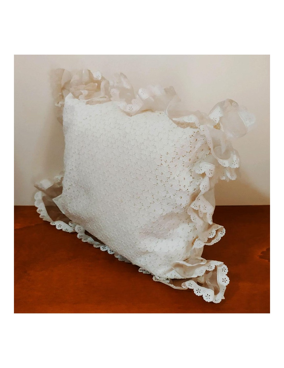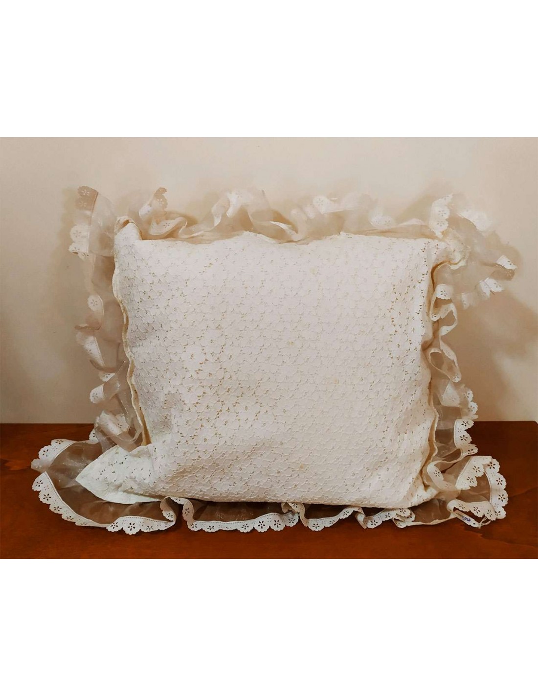 Cuscino Artigianale per Arredo Avorio con Pizzo San Gallo e Volant - 40x45 cm- Vintage