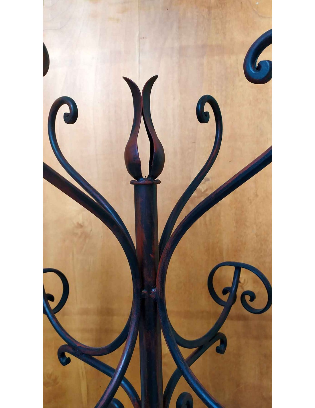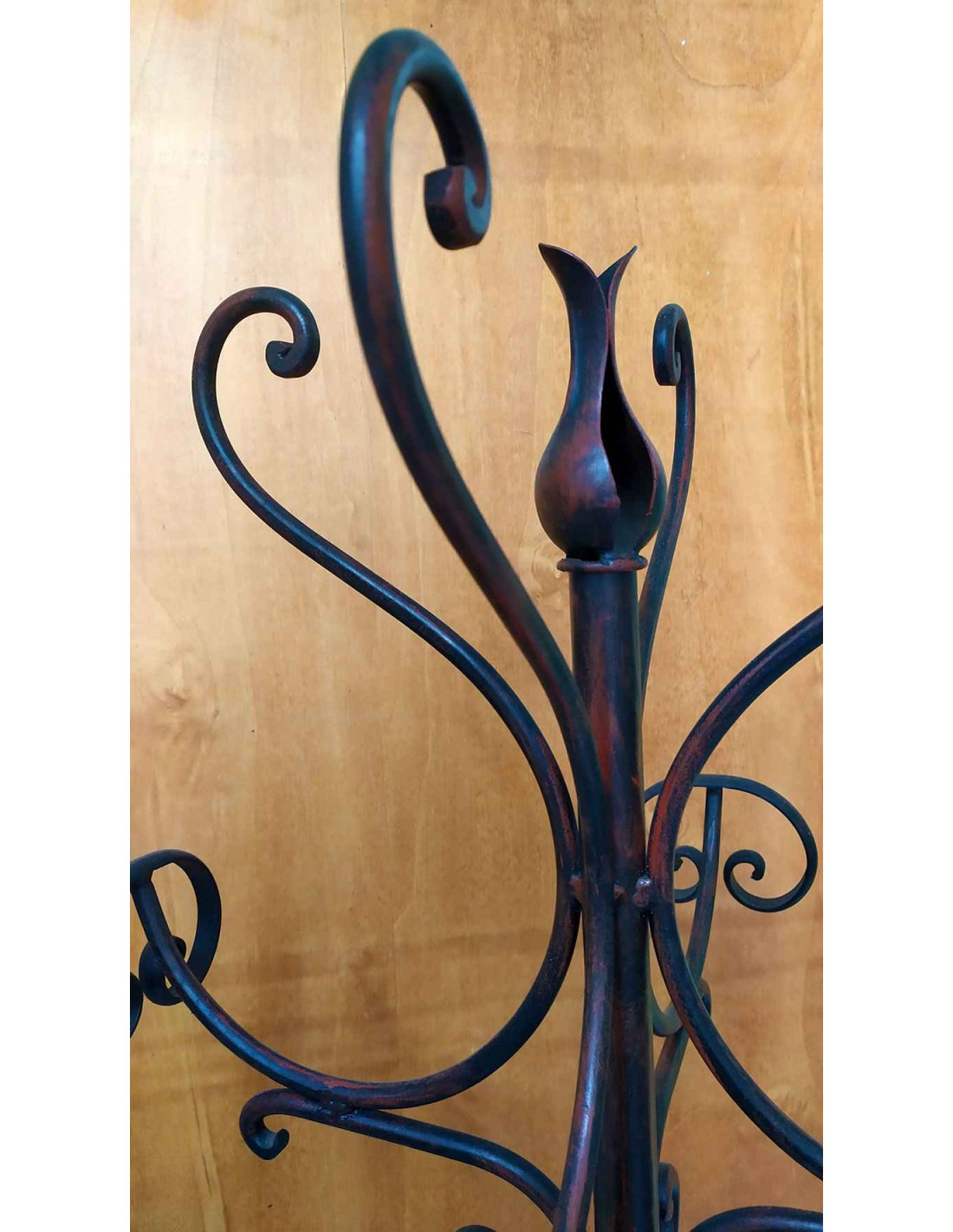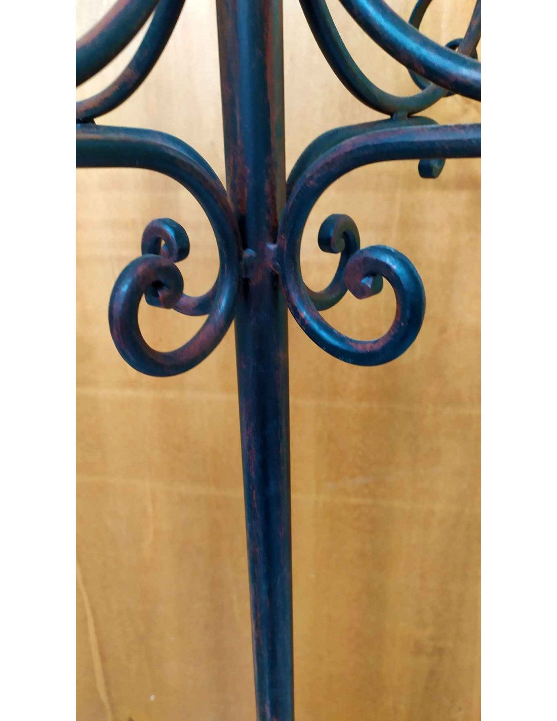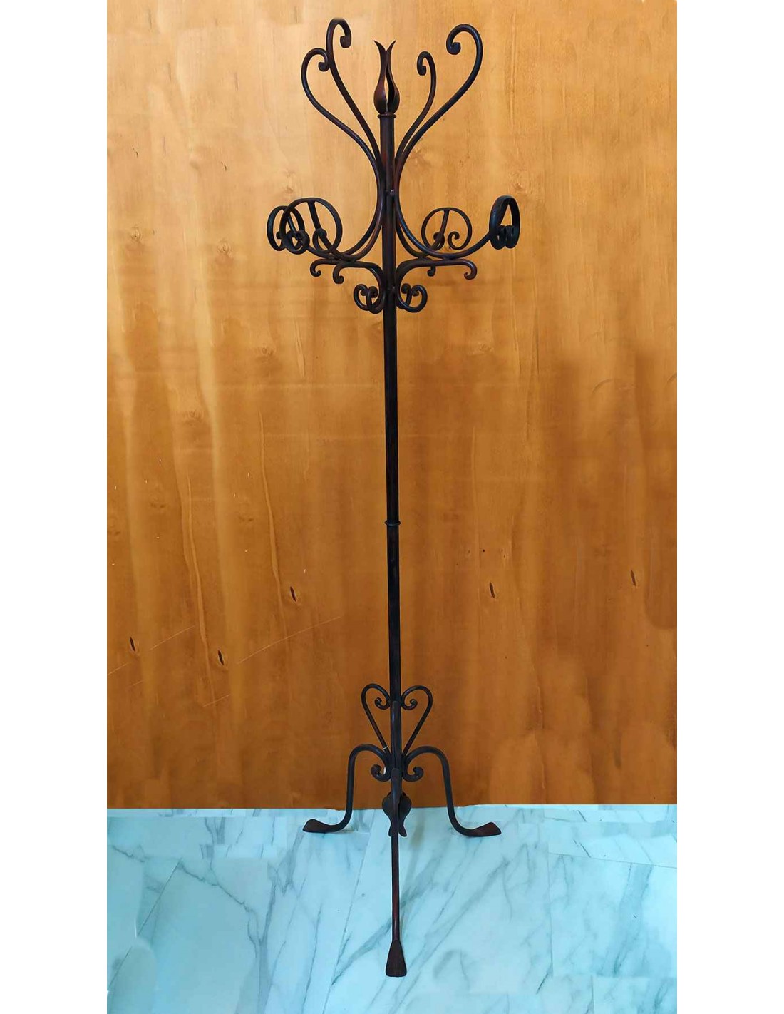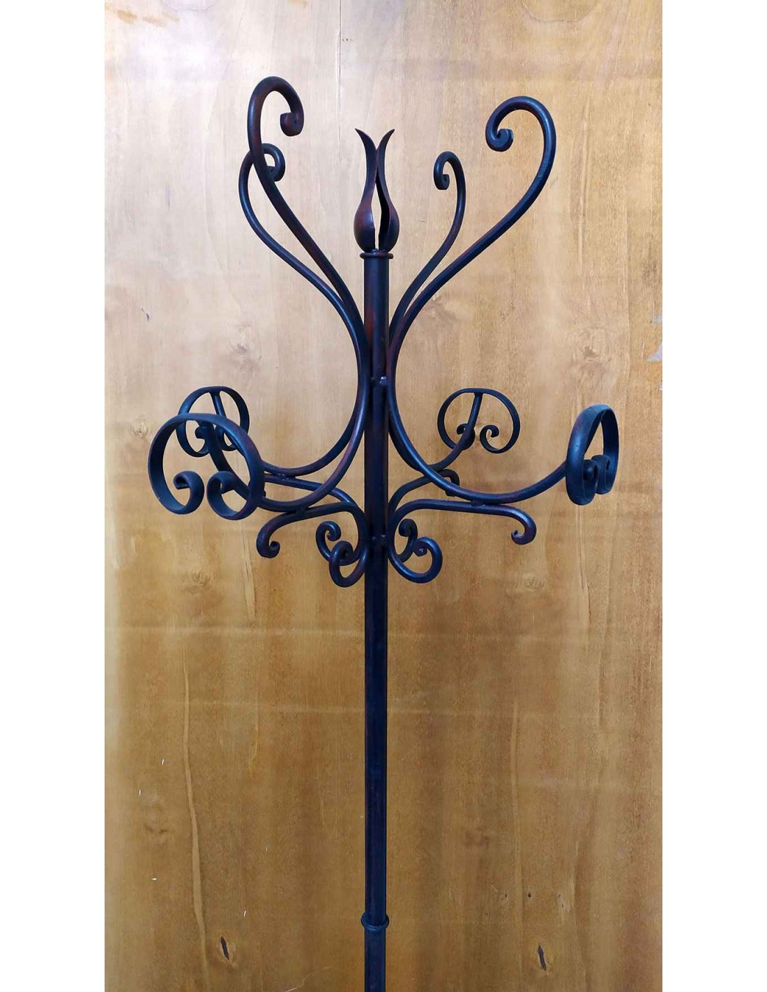 Aggiungi un tocco di intramontabile eleganza al tuo ingresso con questo appendiabiti da terra in ferro battuto. Interamente realizzato con tecniche di forgiatura artigianale, questo complemento d'arredo combina la robustezza del metallo con la leggerezza estetica delle sue linee sinuose. Attaccapanni costituito da due pezzi separati, una base con una parte superiore che va ad incastrarsi sulla parte centrale, ottenendo un fantastico oggetto utile e pratico.