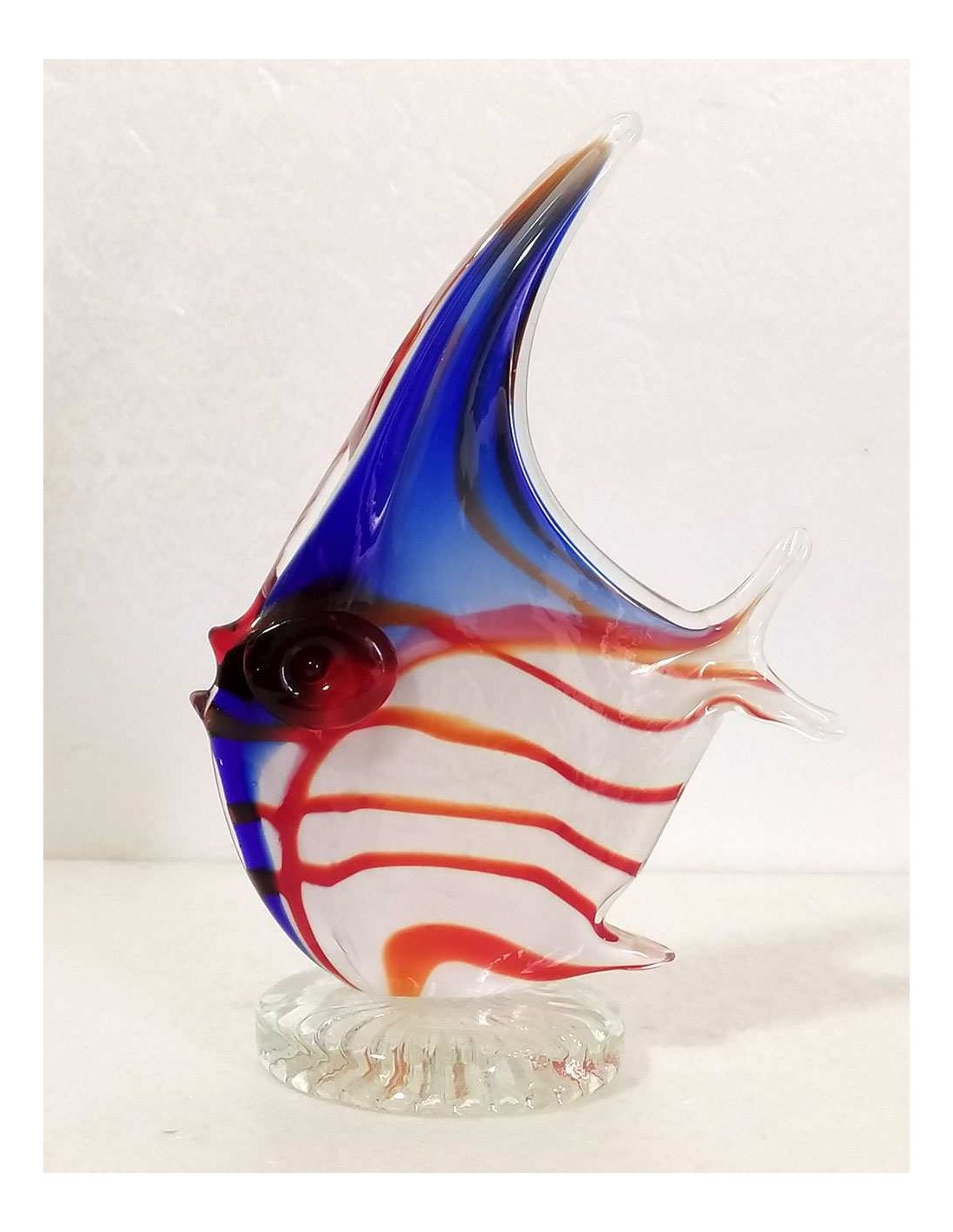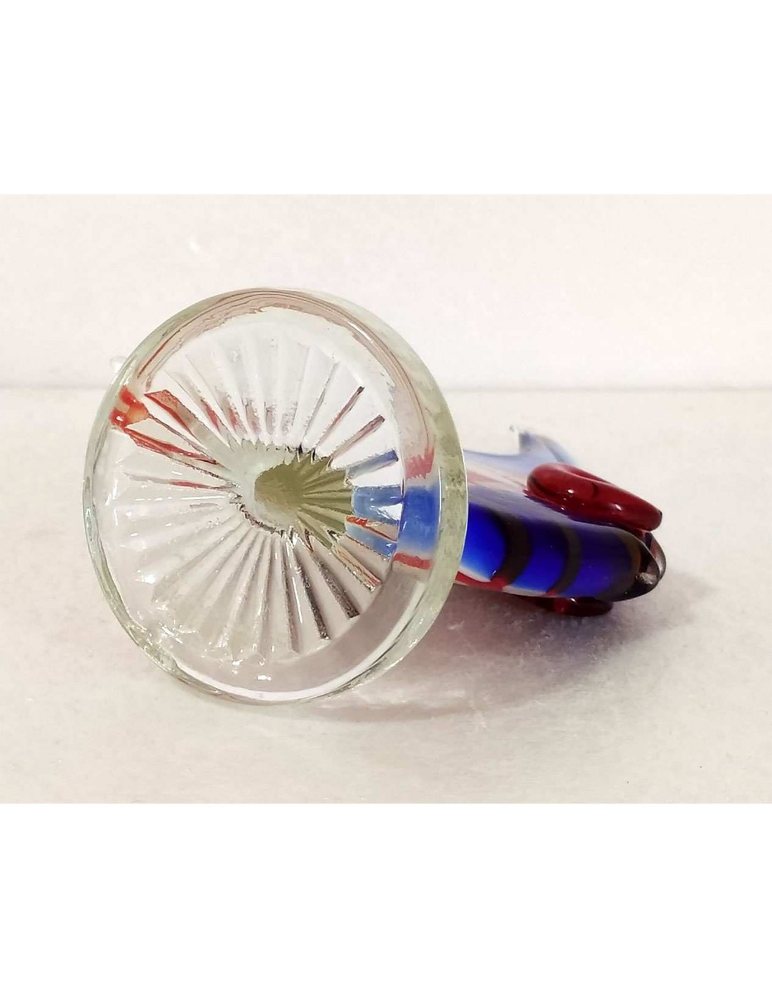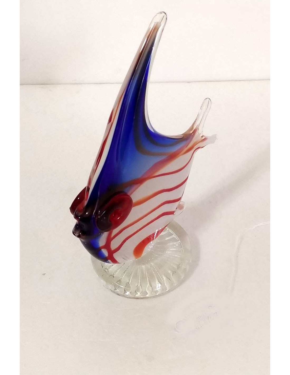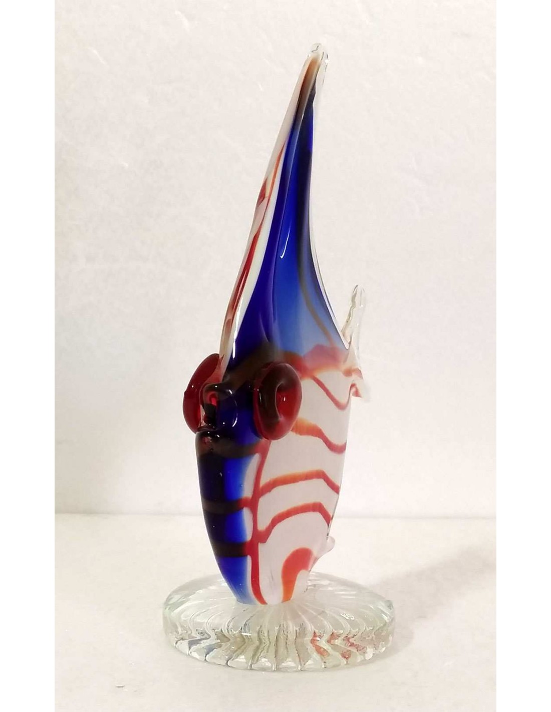 Pesce in vetro artistico stile murano blu, arancio e rosso 12,5x7xH18 cm - Vintage