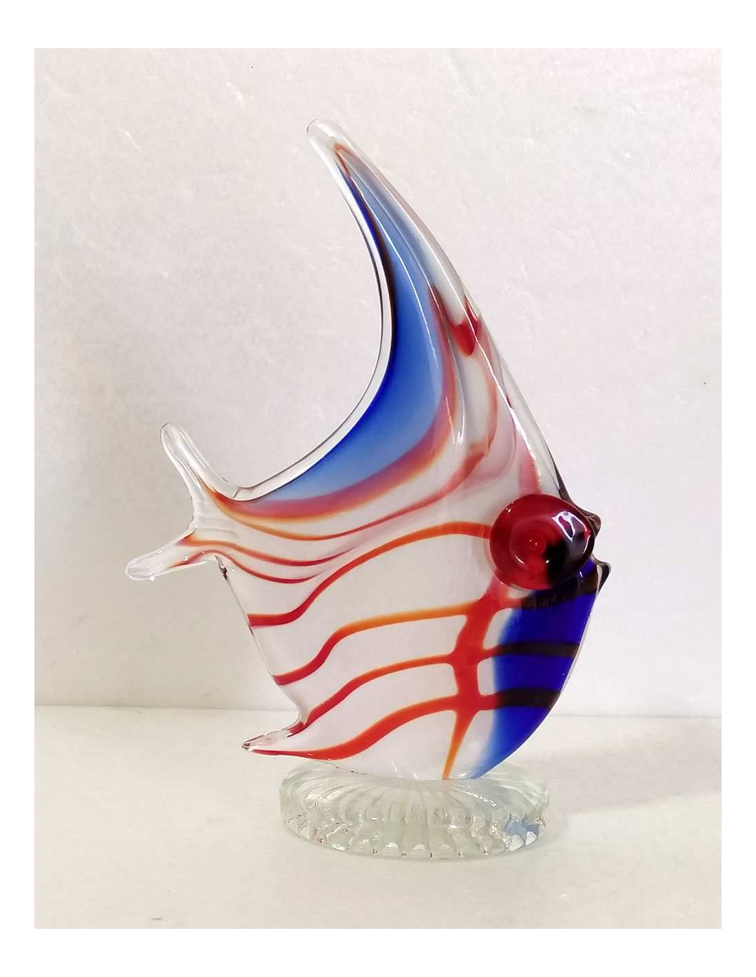 Scultura perfetto per arredi moderni, classici o a tema costiero. Scultura pesce con lavorazioni e colori integrati all'interno del vetro, permettendo la conservazione del colore nel tempo. Perfetto come elegante fermacarte sulla scrivania o come regalo esclusivo per gli amanti del mare e del design, questa scultura rappresenta un regalo sofisticato per amanti del design, capace di impreziosire qualsiasi ambiente con un tocco di luce e colore.