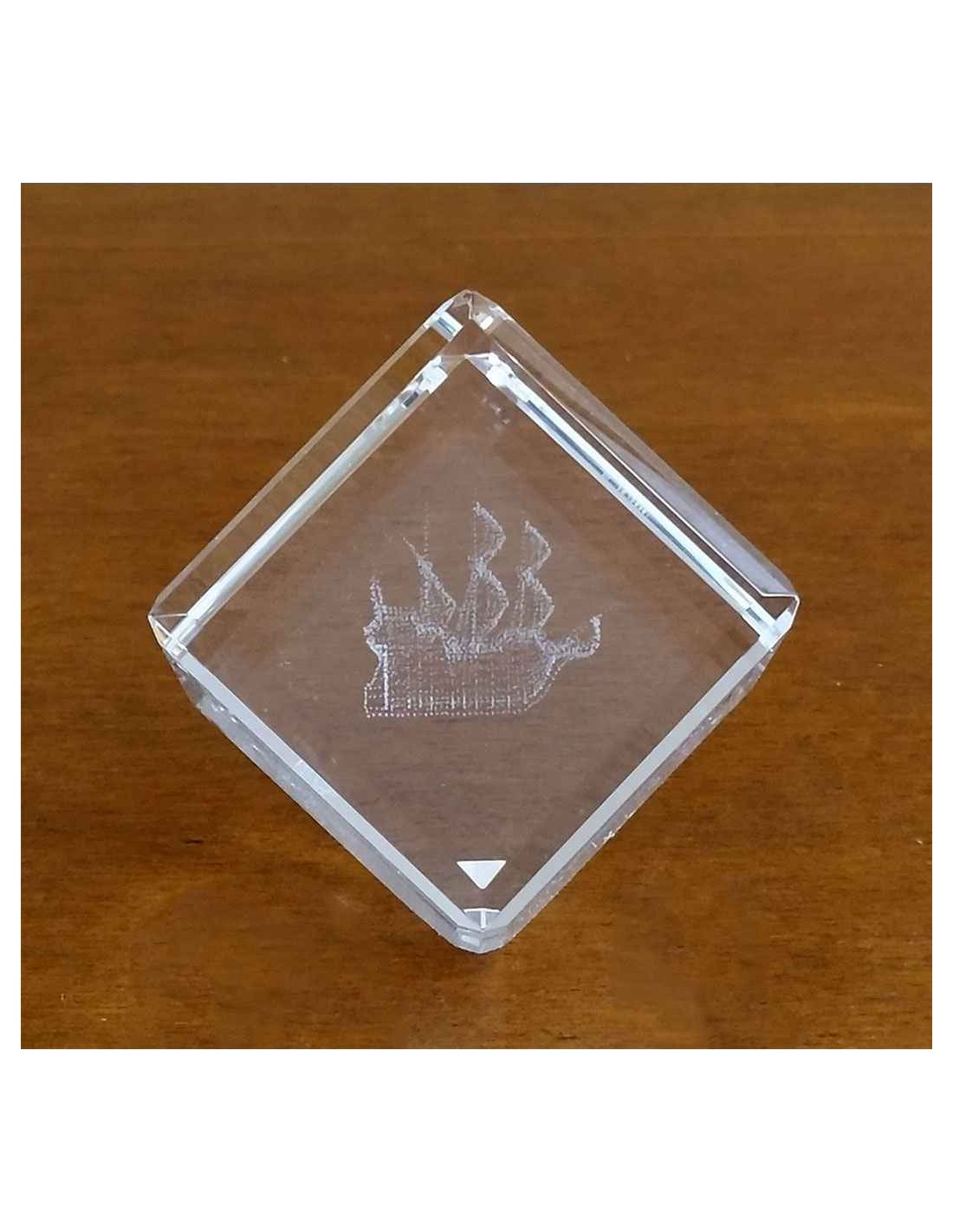 Fermacarte cubo in Cristallo con Incisione Laser 3D Veliero Vintage