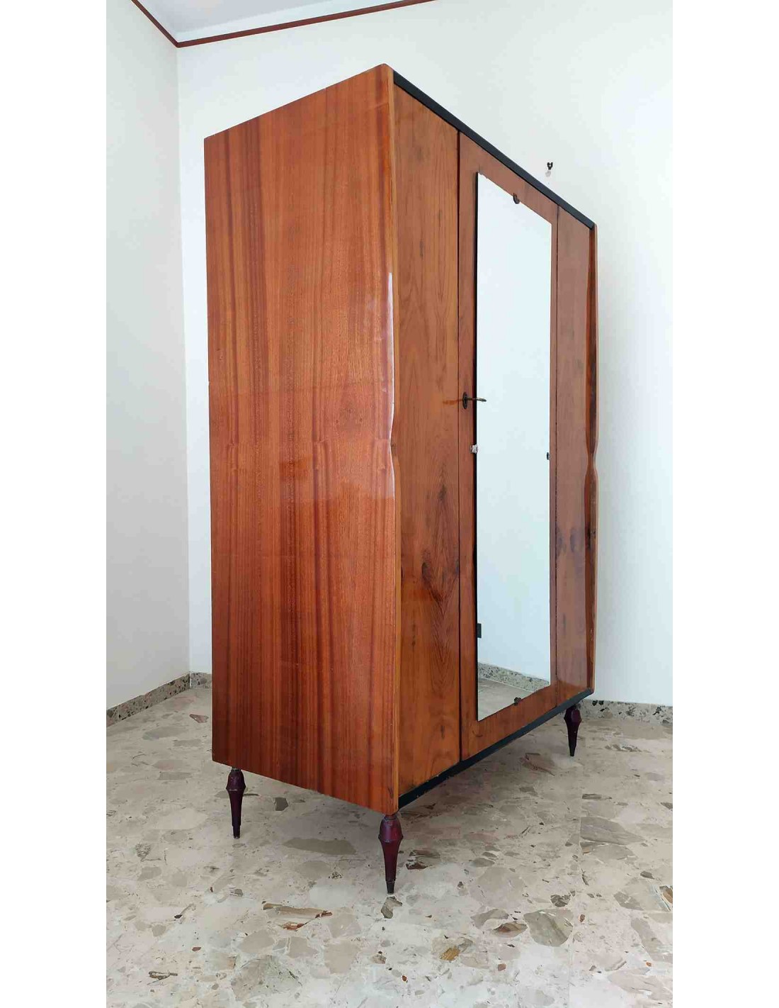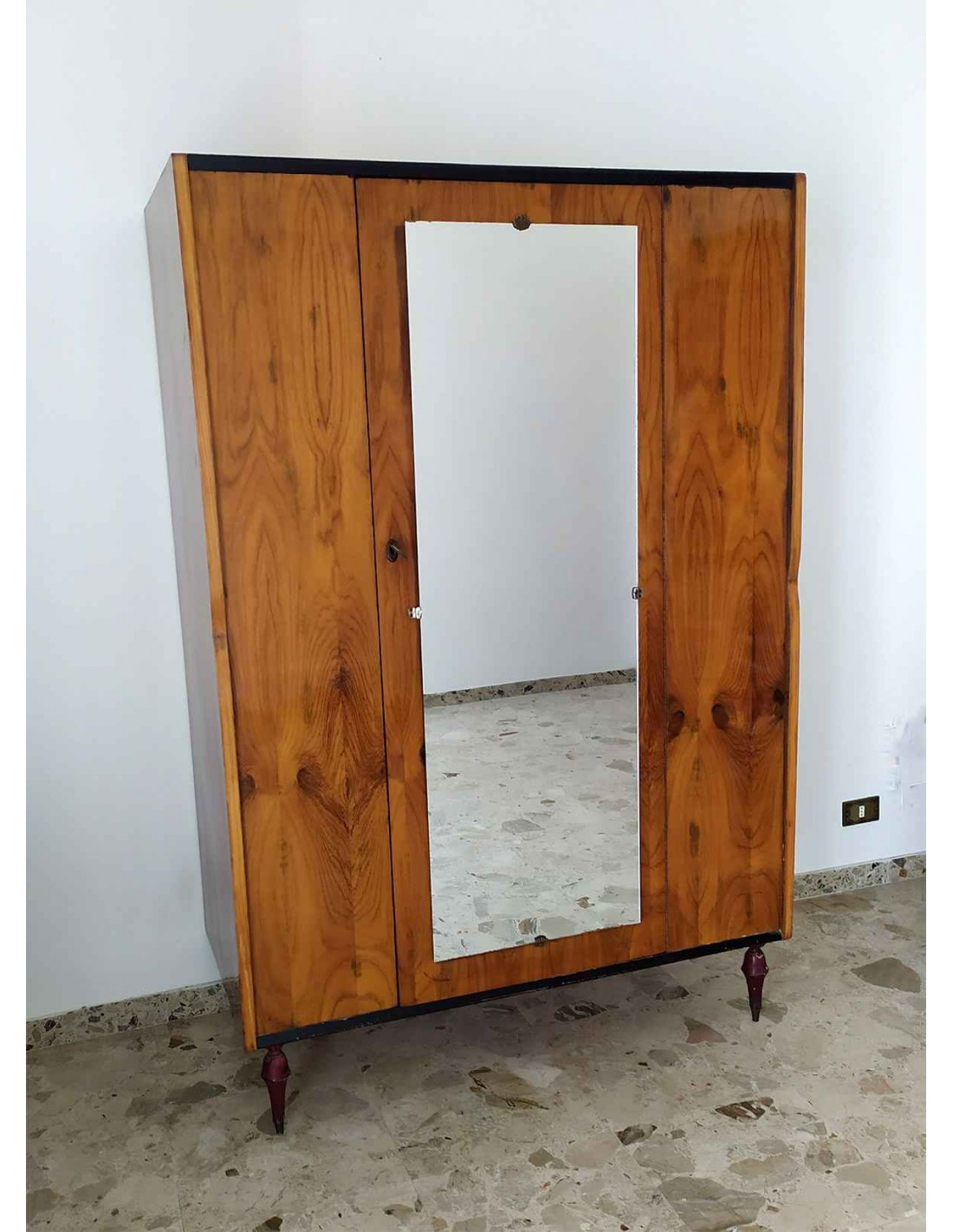 Scopri l’eleganza senza tempo dell’Armadio con Specchio Frontale 1 Anta Vintage, risalente agli anni 50, completo di serratura e chiave antica originale, con un appendiabiti centrale. Armadio perfetto per aggiungere un tocco retrò alla tua camera da letto o ingresso, con dimensioni L 119,3 x P 58,5 x H 179 cm.