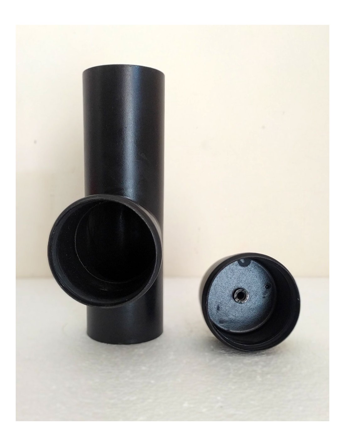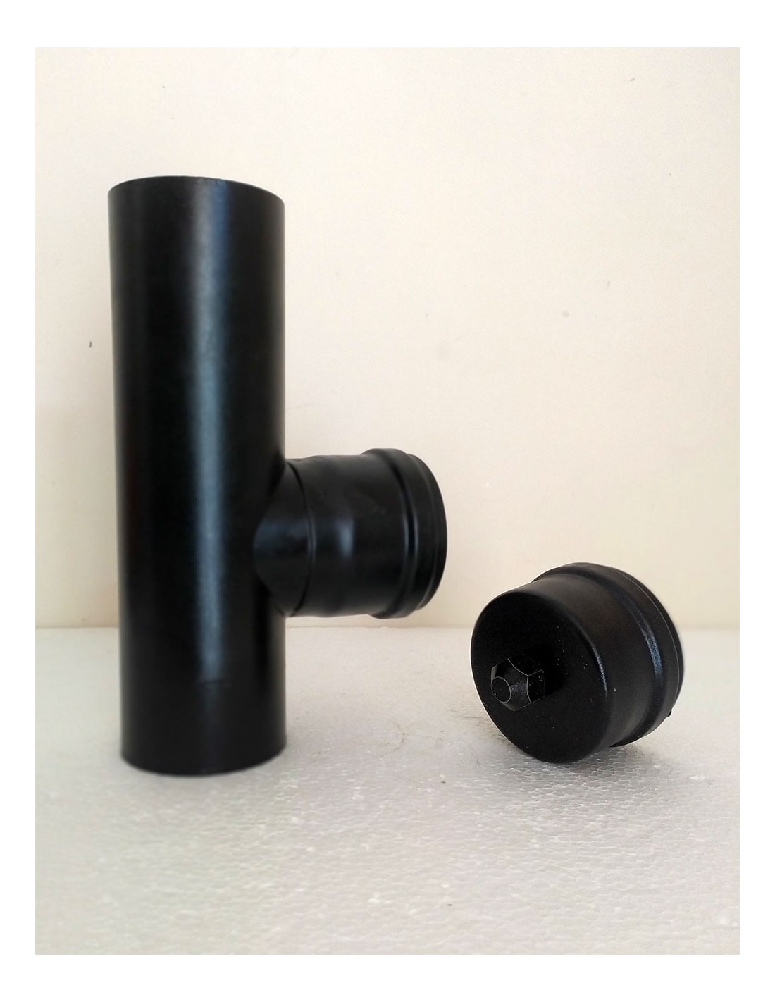 Raccordo-a-T-90°-con-tappo-di-scarico-acciaio-nero-per-stufe-a-pellet-2