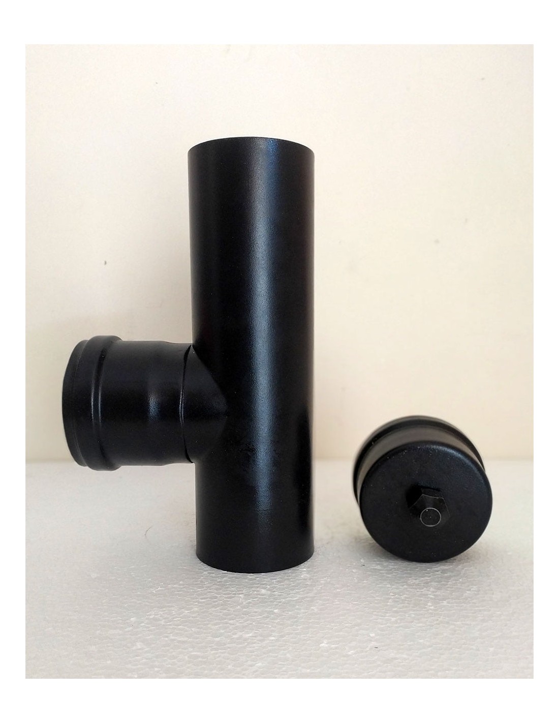Raccordo-a-T-90°-con-tappo-di-scarico-acciaio-nero-per-stufe-a-pellet-3