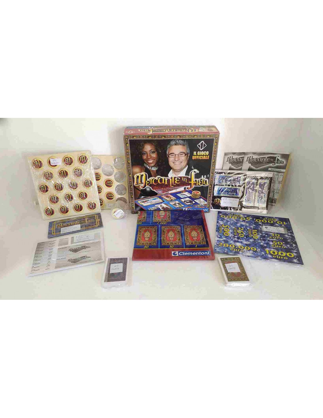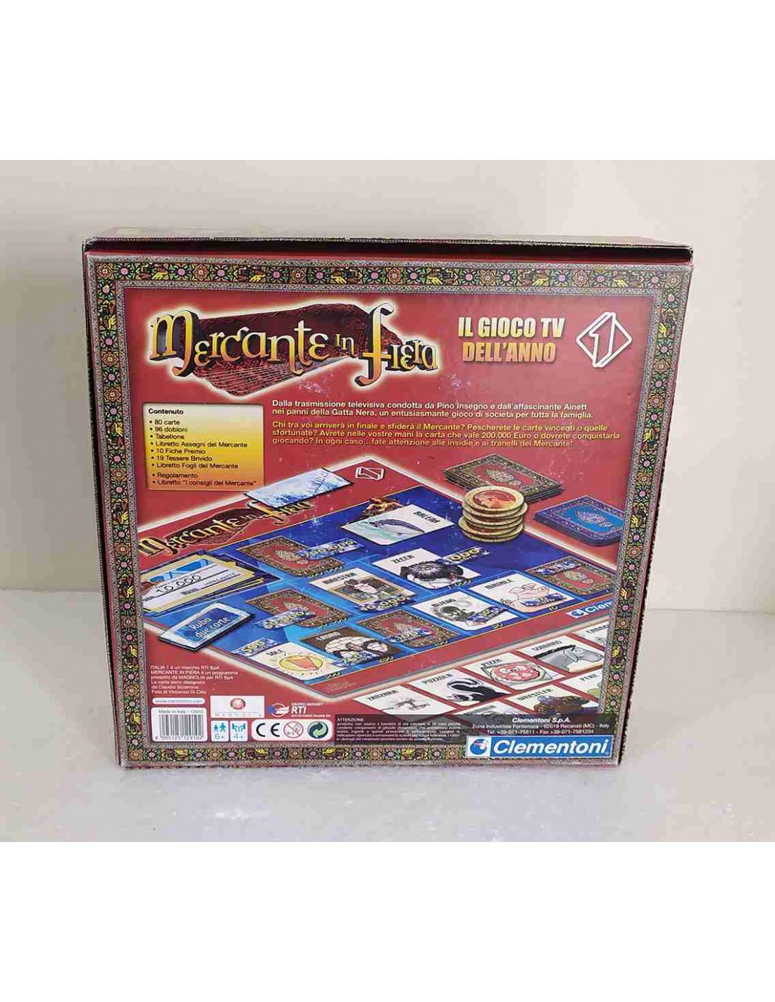 Un grande classico del gioco da tavolo degli anni 2000, gioco ufficiale della trasmissione televisiva condotta da Pino Insegno su Italia 1, che affascina adulti e bambini! Gioco da tavolo Clementoni Mercante in Fiera è il tradizionale gioco di carte e fiche, un tabellone con un gioco tutto da scoprire! Gioco con 80 carte illustrate e immagini dai colori brillanti per rendere il gioco ancora più coinvolgente. Un gioco perfetto per passare del tempo insieme e divertirsi in compagnia degli amici o con tutta la famiglia. Ideato, progettato e sviluppato in Italia.