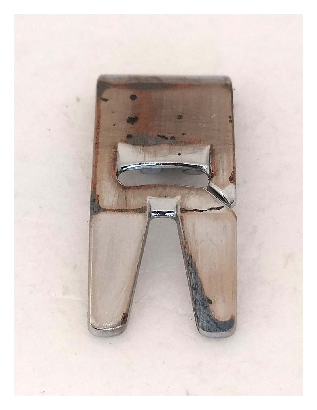 La fessura centrale permette l'oscillazione dell'ago per punti zig-zag precisi e punti decorativi senza rischio di urti. Realizzato in metallo resistente con finitura lucida per garantire una scorrevolezza ottimale sul tessuto e una lunga durata nel tempo.