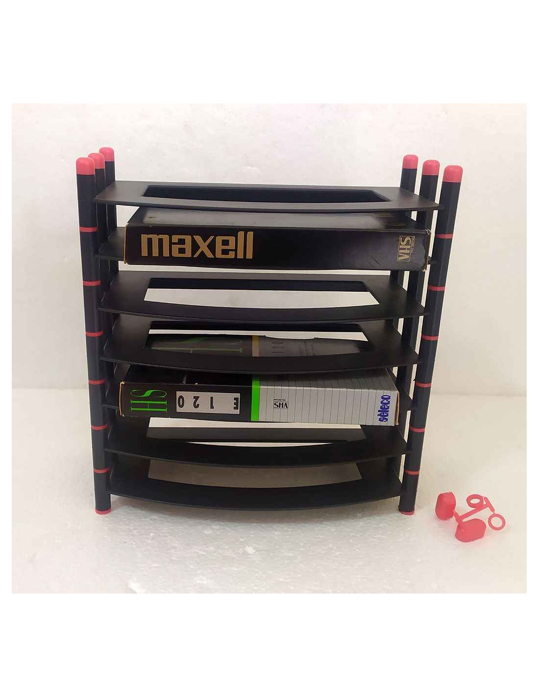 Porta Videocassette VHS a 6 Posti in plastica Nera Vintage Anni 90