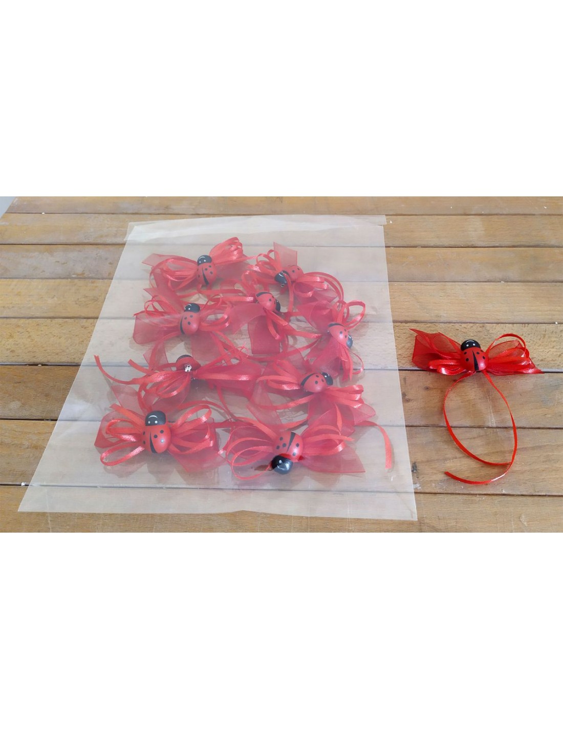 Coccinella Rossa in Legno con Spilla e Fiocchetto Rosso Confezione da 10 pz