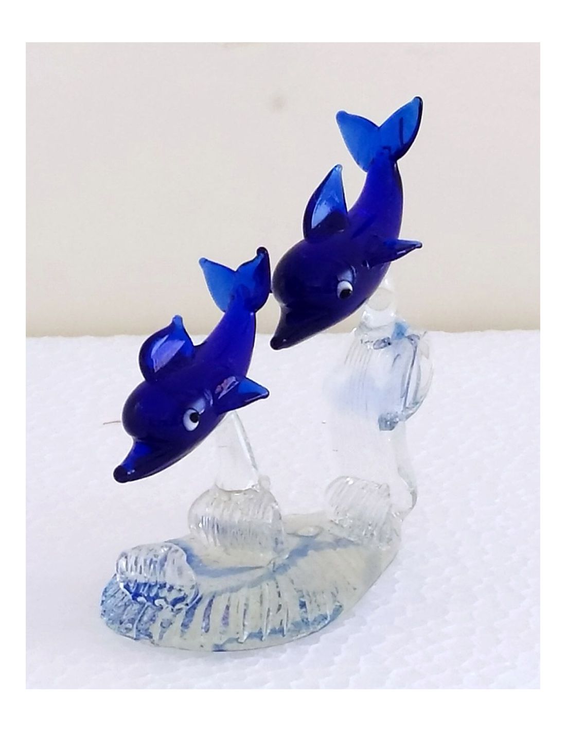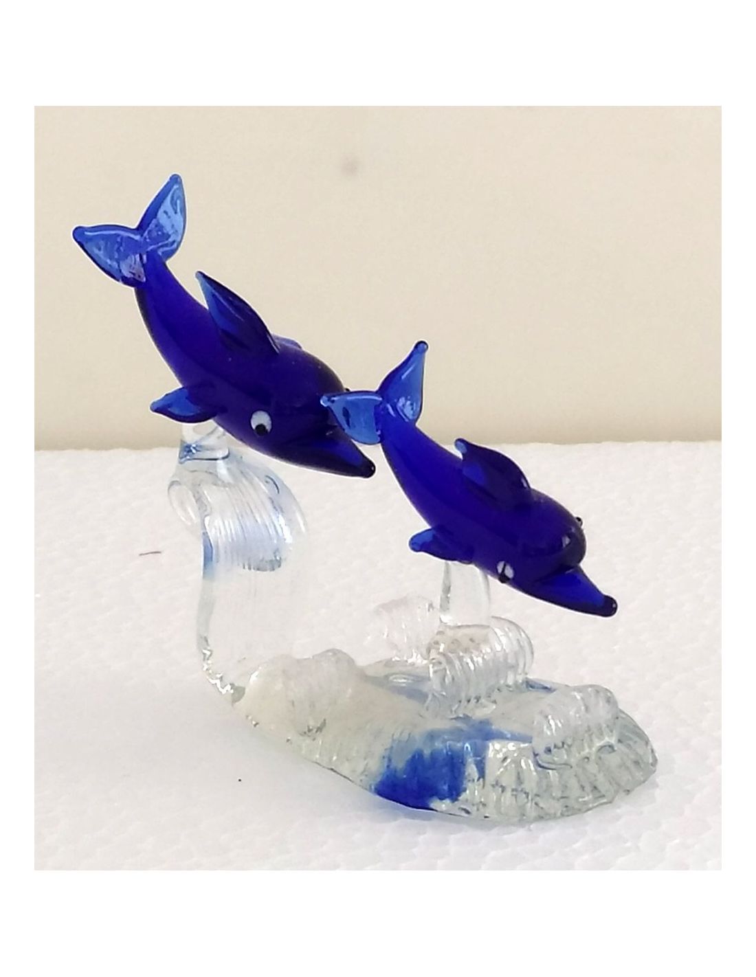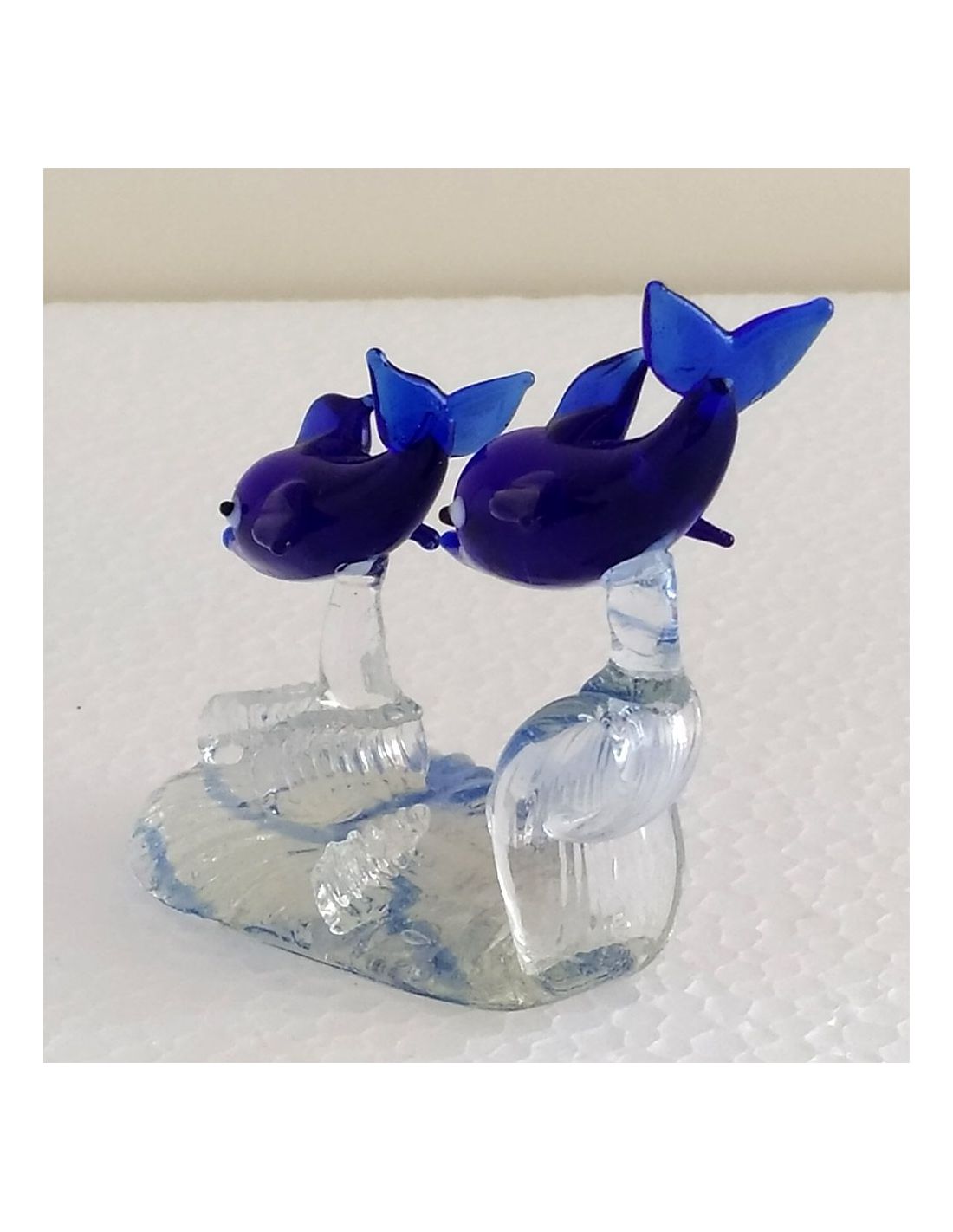 Delfini in vetro Blu/Azzurro in coppia su base trasparente.