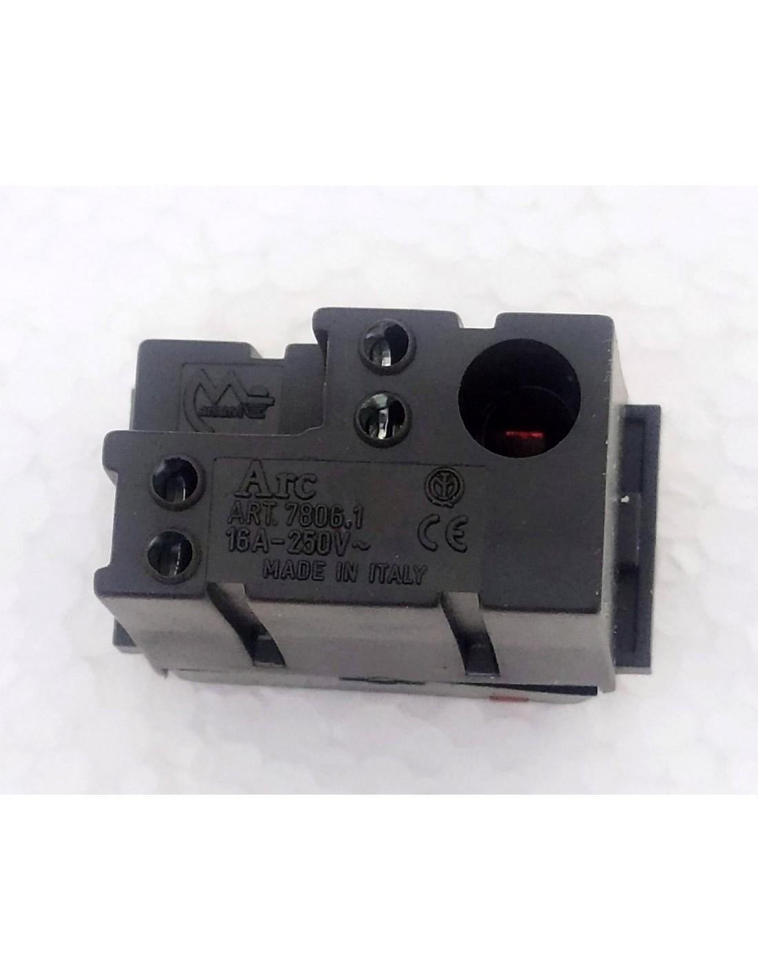 Pulsante unipolare luminoso Arc, compatibile con la serie Bticino Living Classic, completo di lampada spia 220V.
