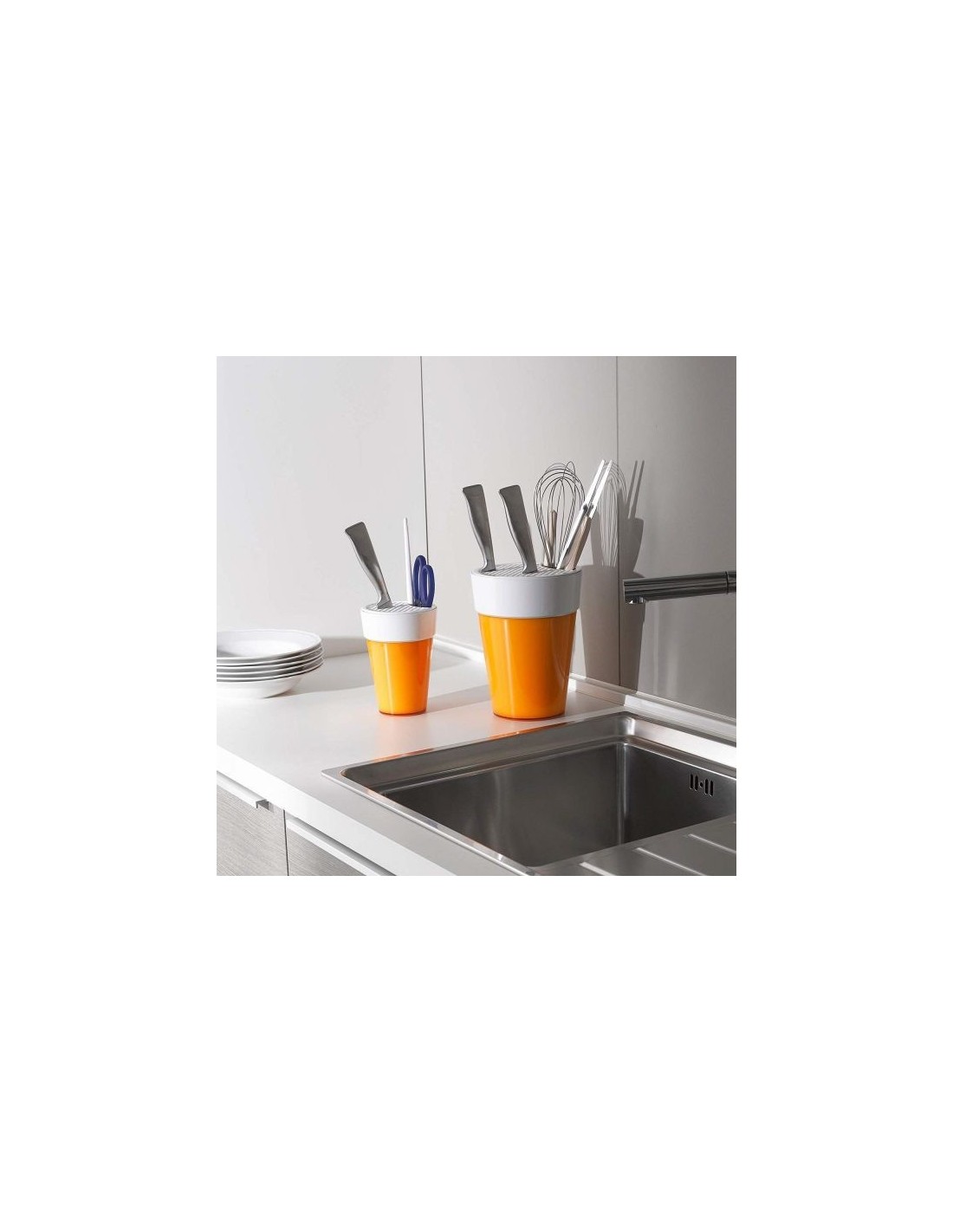 Ceppo universale linea Chef, in plastica colorata e con parti interne estraibili in materiale acrilico. Utensile da cucina multifunzione.