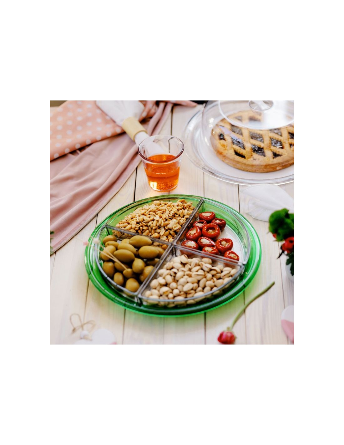 Antipastiera tonda linea Globo,diametro 32,5 cm in materiale acrilico colorato, costituita da un vassoio e da quattro divisori estraibili, utilizzabili anche separatamente. Articolo usabile sia come vassoio, che come antipastiera per servire contemporaneamente quattro differenti tipi di antipasti. Gli spicchi sono separabili dal resto dell’antipastiera, ideali per servire in tavola stuzzichini, formaggi, salatini e affettati, lavabili in lavastoviglie, disponibile in diversi colori.