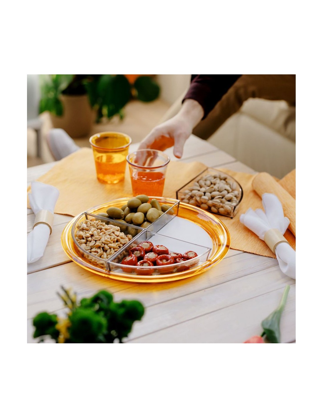 Antipastiera tonda linea Globo,diametro 32,5 cm in materiale acrilico colorato, costituita da un vassoio e da quattro divisori estraibili, utilizzabili anche separatamente. Articolo usabile sia come vassoio, che come antipastiera per servire contemporaneamente quattro differenti tipi di antipasti. Gli spicchi sono separabili dal resto dell’antipastiera, ideali per servire in tavola stuzzichini, formaggi, salatini e affettati, lavabili in lavastoviglie, disponibile in diversi colori.