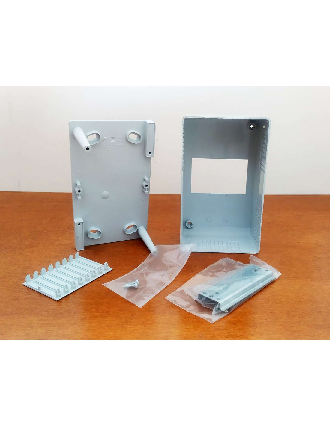 Centralino da parete, da esterno, senza sportello, a 2/4 moduli, può contenere 2 moduli larghi o in alternativa 4 moduli stretti, su guida DIN metallica.
