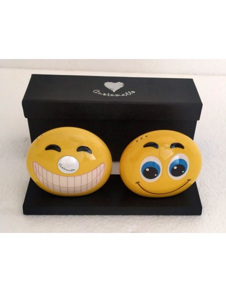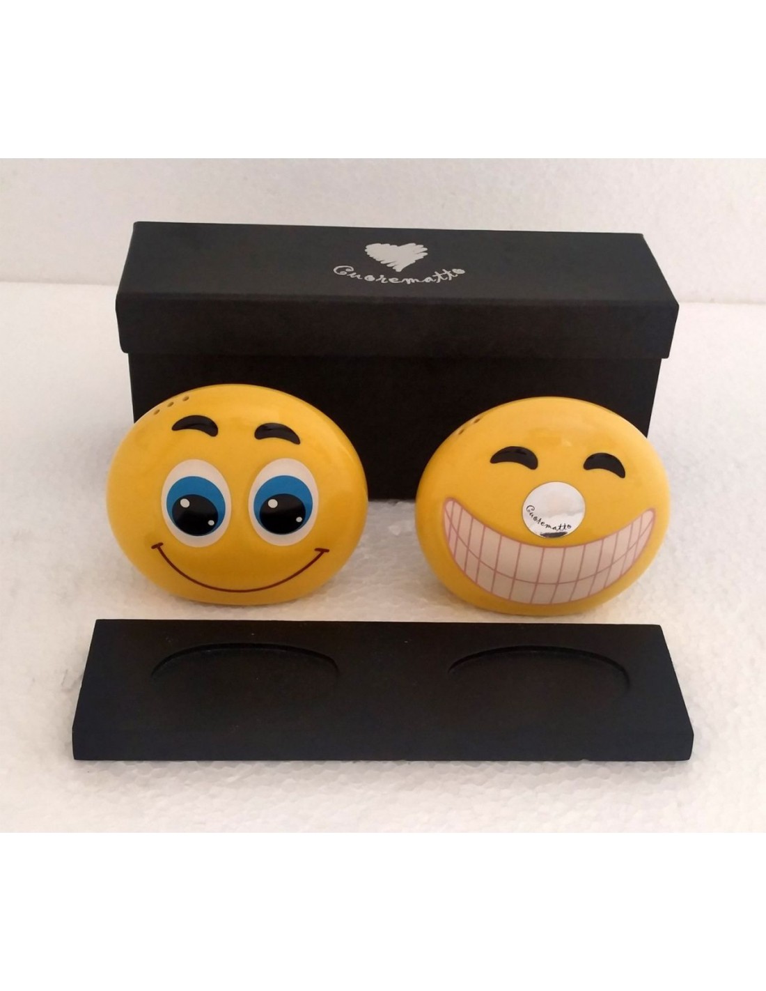 Sale e Pepe Cuore Matto, linea Cuorsmile, in ceramica colorata giallo su basetta in legno di colore nero - Art.D4363