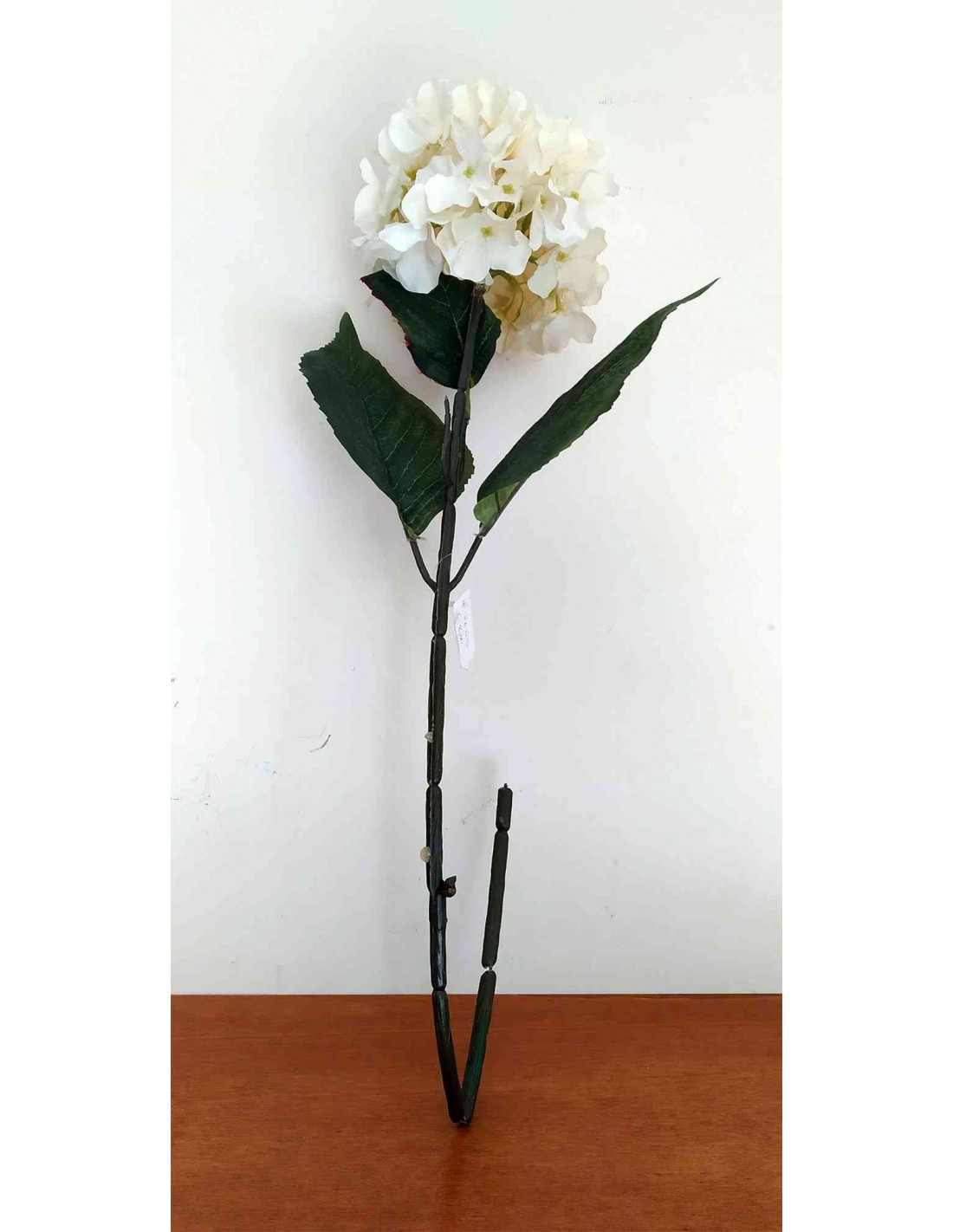 Fiore Ortensia Artificiale Panna a Stelo Singolo con Foglie Verdi