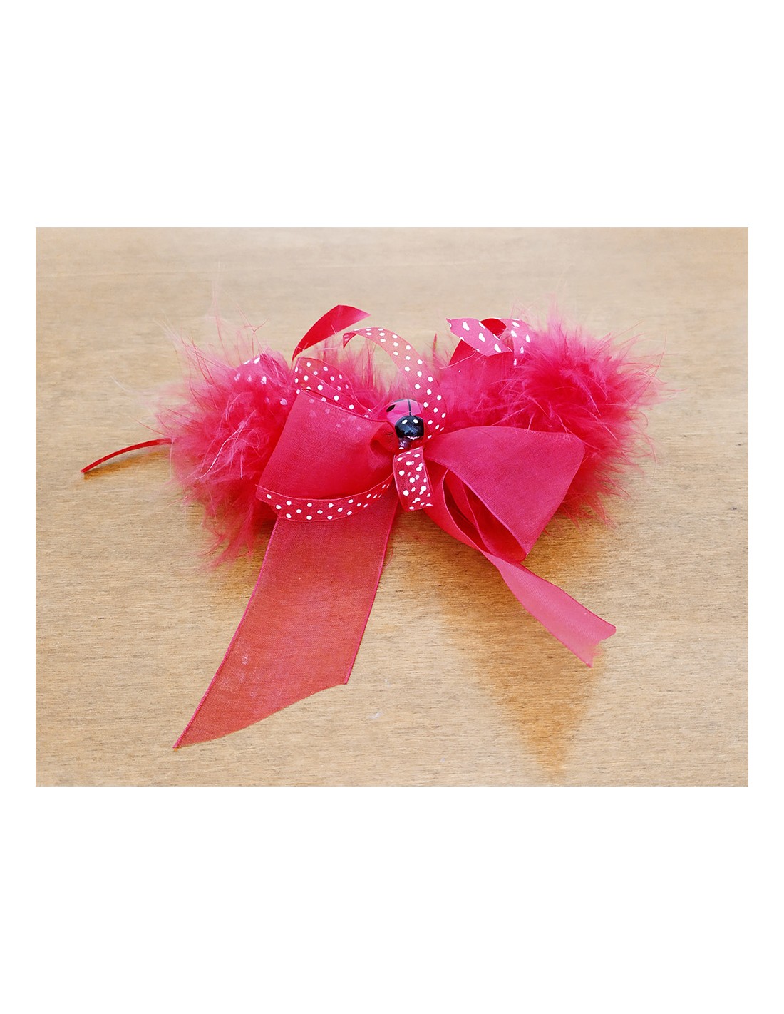 Coccinella magnetica rossa su fiocco rosso, ideale per pacco regalo, decorazione in genere.