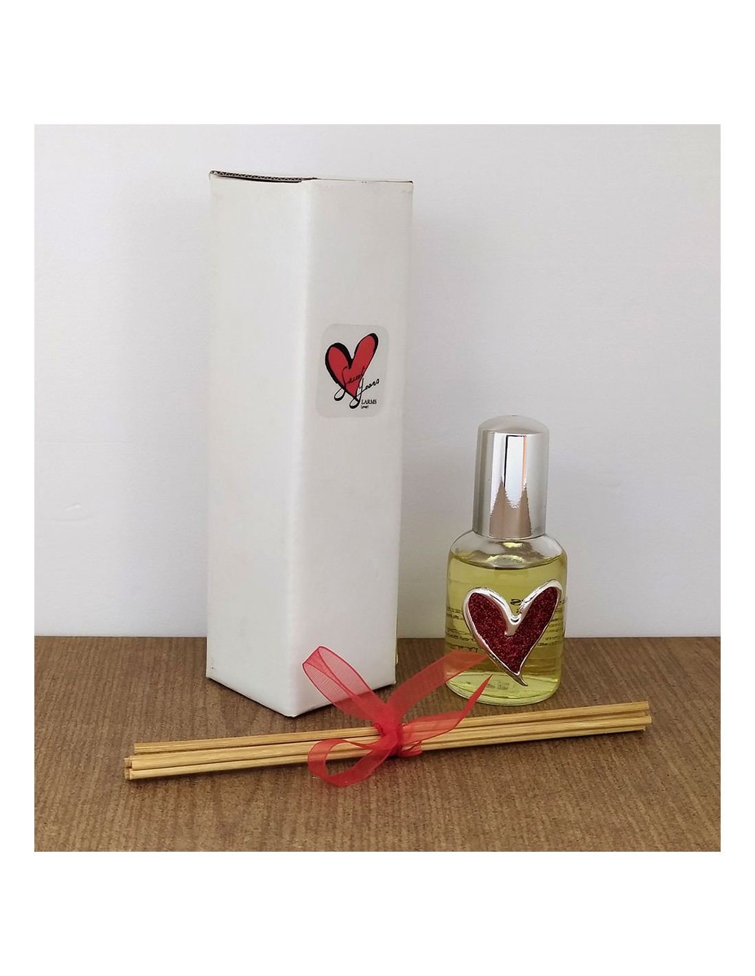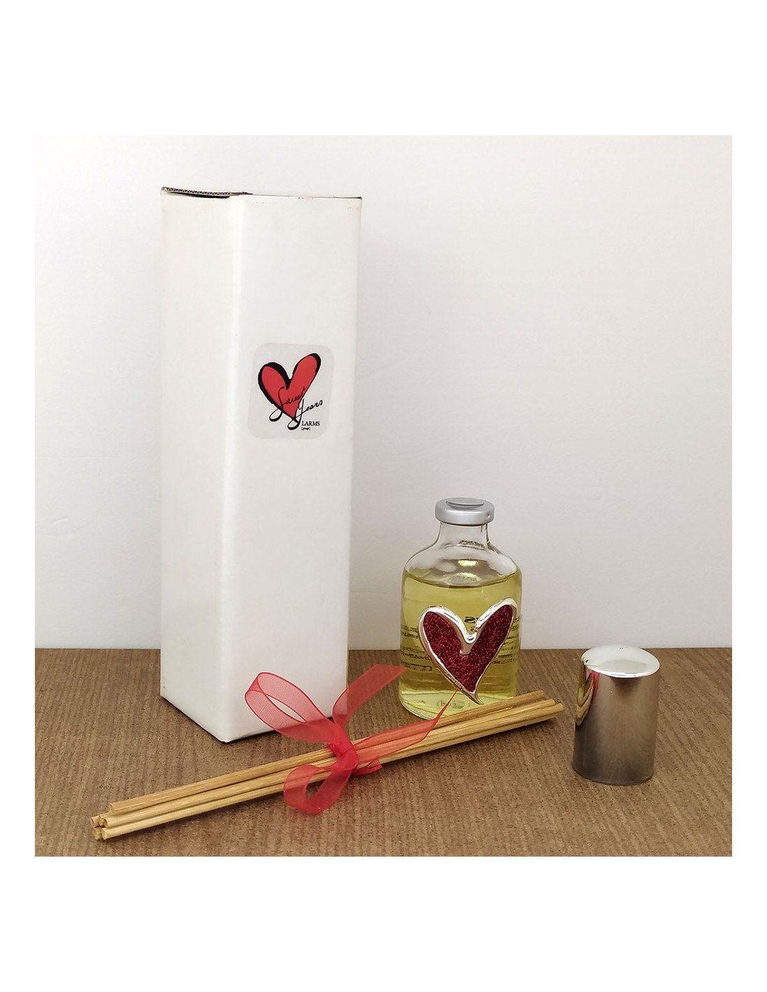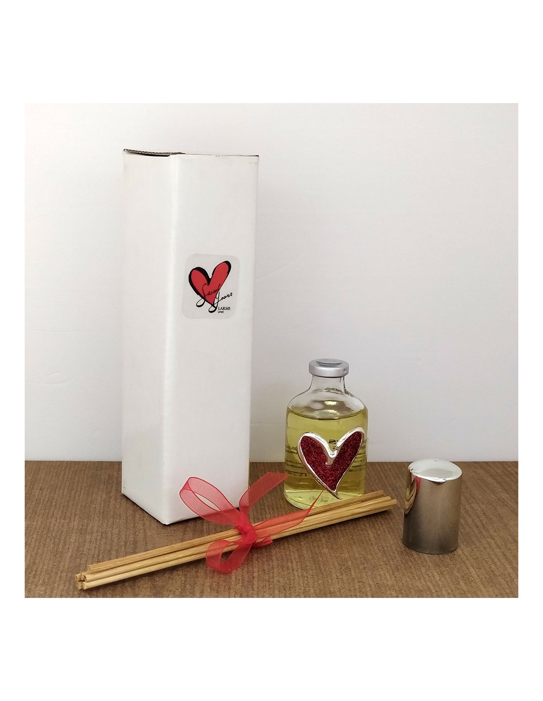 Profumatore ambiente Sweet years con cuore rosso glitterato, completo di bastoncini.