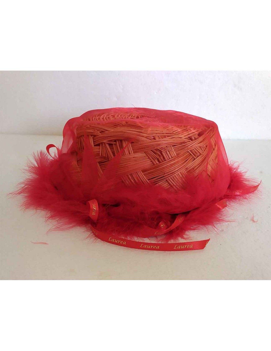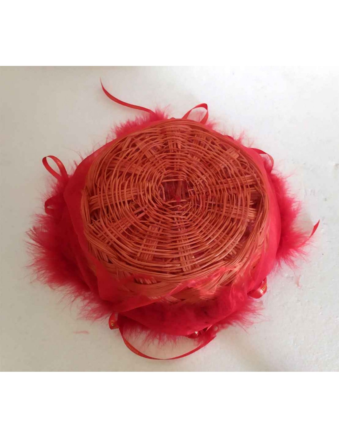 Cesto Bomboniere Laurea con Piume Rosse e Nastri in Raso Ø 26xH10 cm