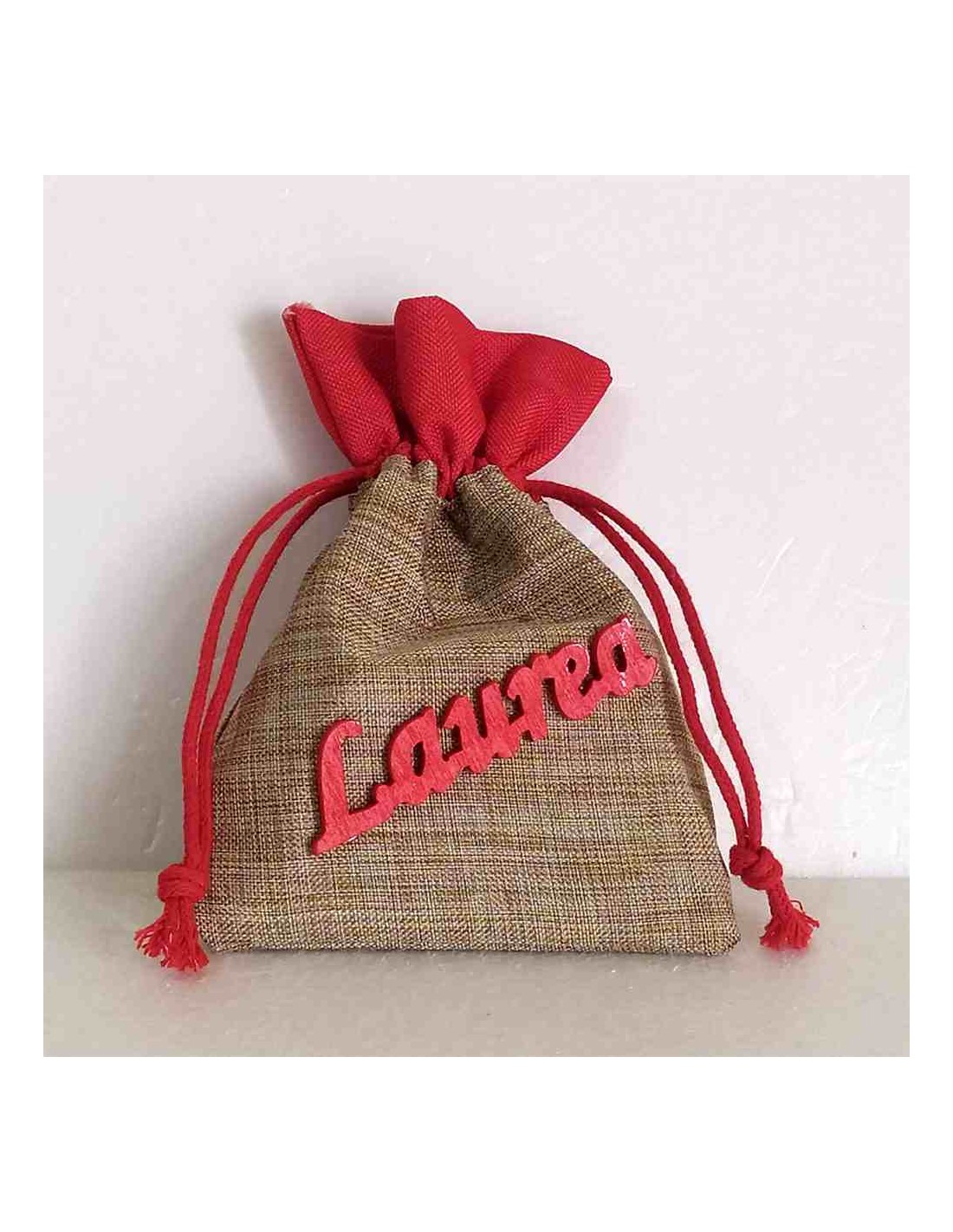Celebra il traguardo della tua Laurea con un tocco di eleganza rustica e originale. Questo sacchetto portaconfetti è l'accessorio perfetto per confezionare le tue bomboniere o come raffinato segnaposto per il tuo rinfresco. Realizzato in tessuto tipo juta dalla trama naturale beige, arricchito da una fodera superiore in tessuto rosso vibrante che crea un elegante effetto a ventaglio. Il sacchetto è impreziosito dalla scritta "Laurea" in rilievo di colore rosso, applicata frontalmente per un effetto tridimensionale di grande impatto visivo. Dotato di un sistema a doppia coulisse con cordoncini rossi coordinati, che permette di chiudere il sacchetto in modo sicuro e veloce, mantenendo i confetti al riparo. Ideale non solo per contenere i classici 5 confetti, ma anche piccoli oggetti ricordo, bijoux o gadget celebrativi. A differenza dei classici sacchetti in velo, questo sacchetto tipo juta offre una consistenza materica superiore e un aspetto più ricercato. È la scelta ideale per chi cerca una bomboniera che unisca tradizione e design contemporaneo.