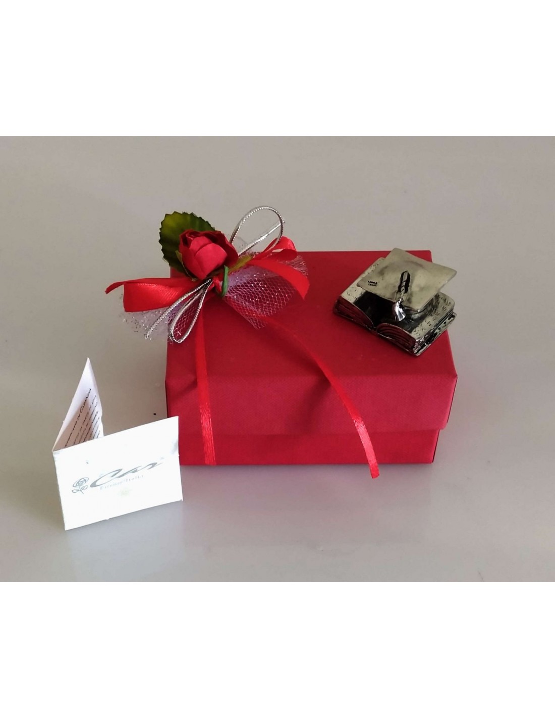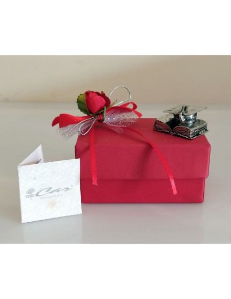 Cono portaconfetti Laurea in tessuto con tulle rosso e tirante cf.da 10 pz completo di accessori