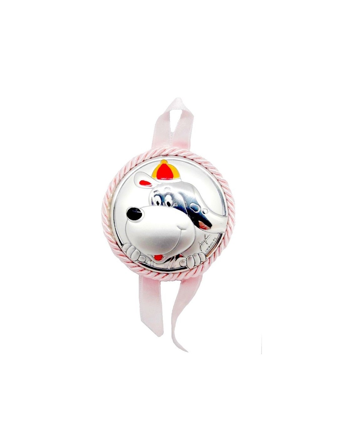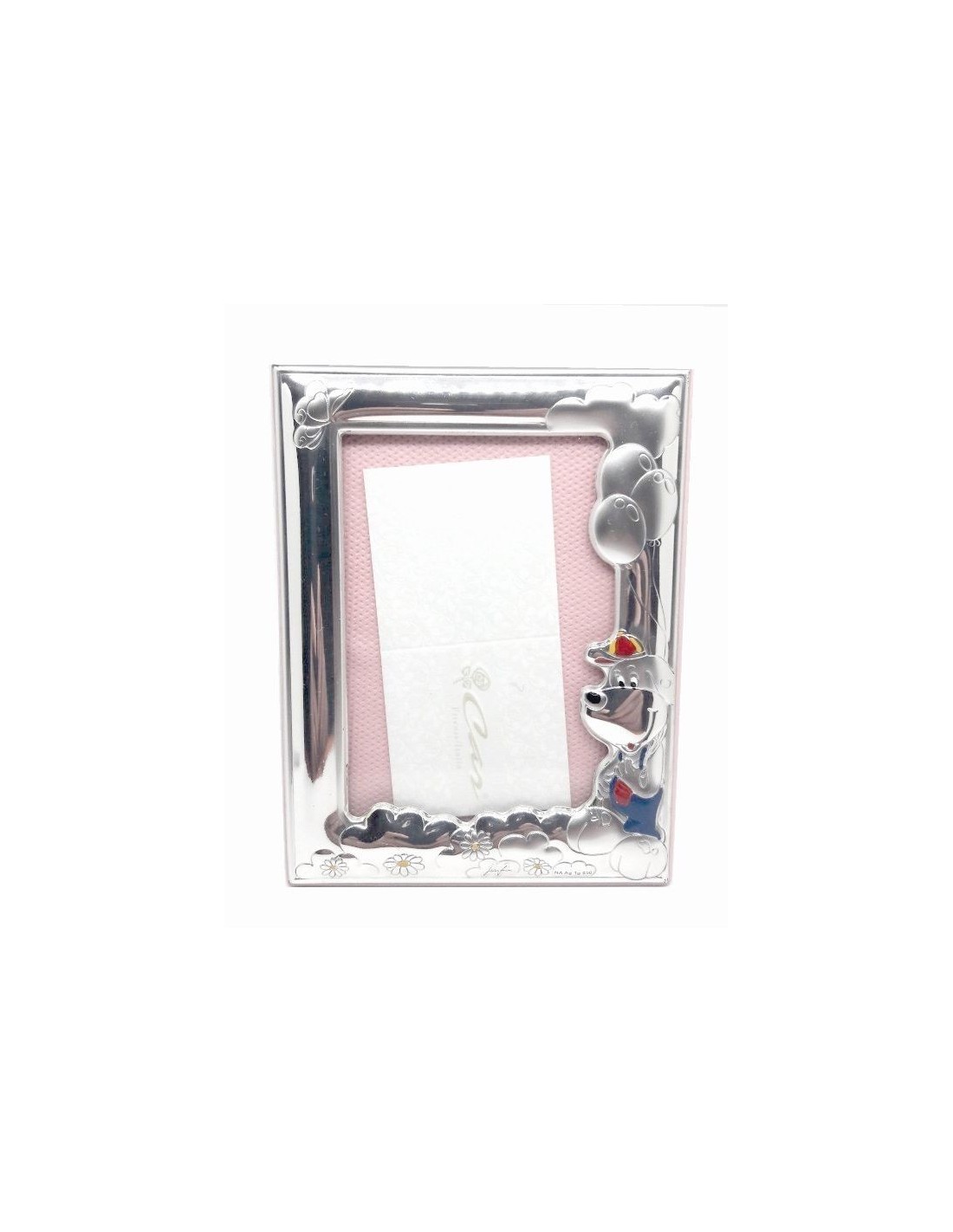 Set Cornice 6x9 cm+Medaglione in argento+Portaciuccio in argento, con box vellutato colore Rosa.