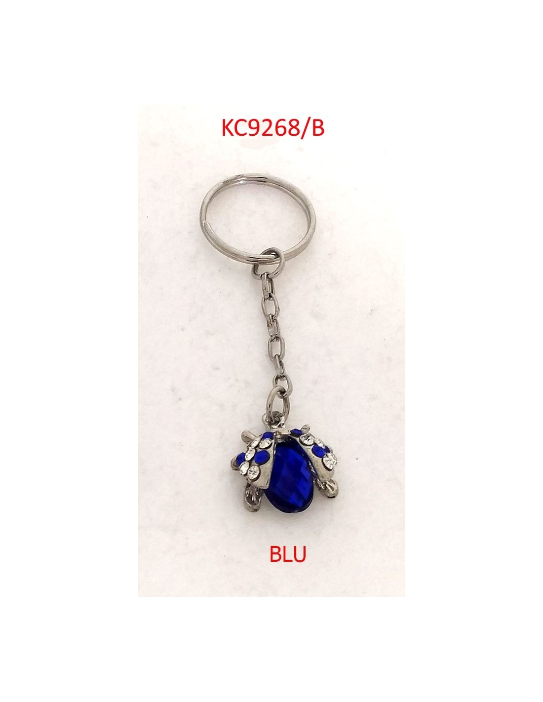 Portachiavi-coccinella-con-gemma-in-vetro-e-ali-con-strass-Blu
