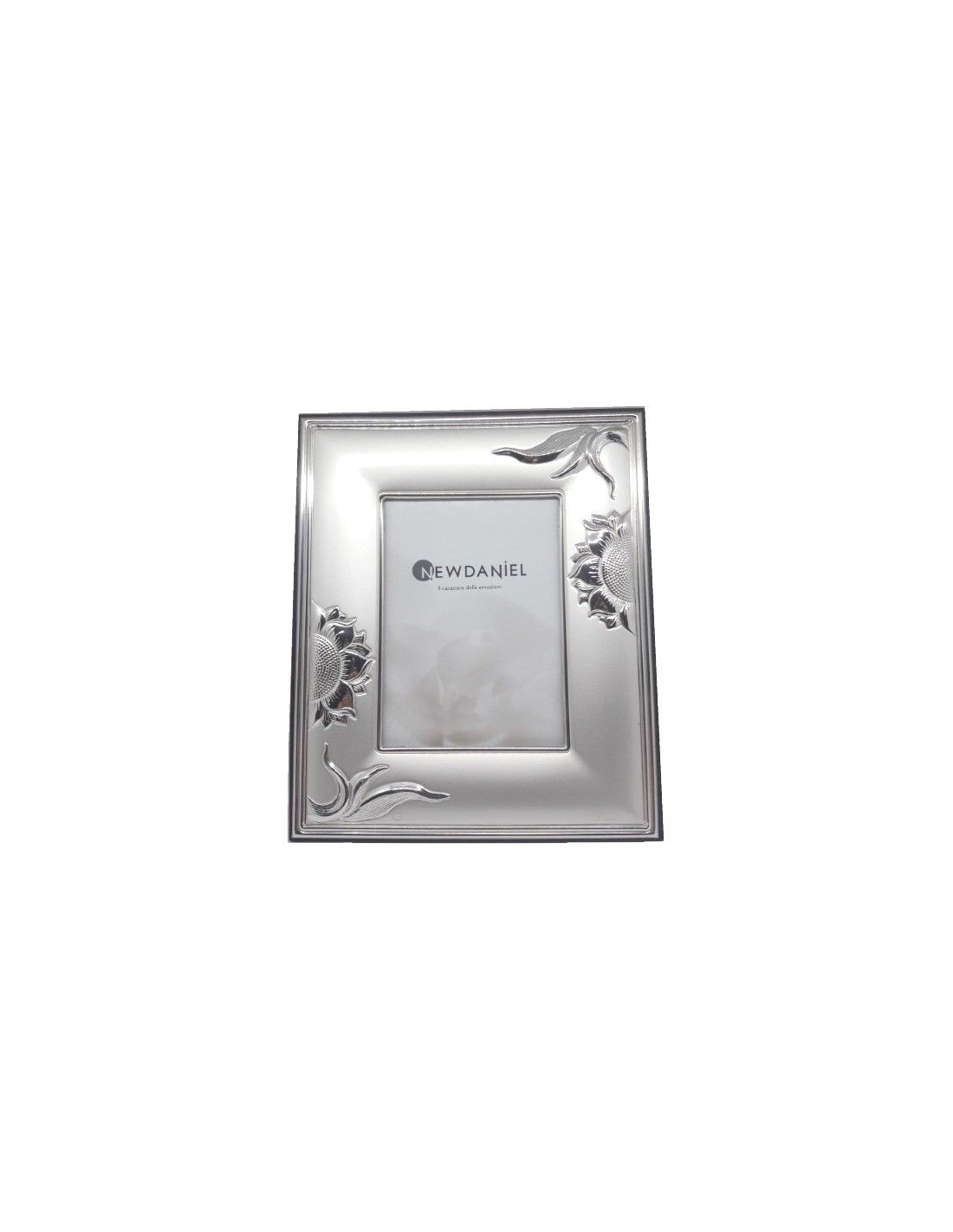 Cornice Portafoto in argento con decorazione Girasoli con retro in legno, serie Paola