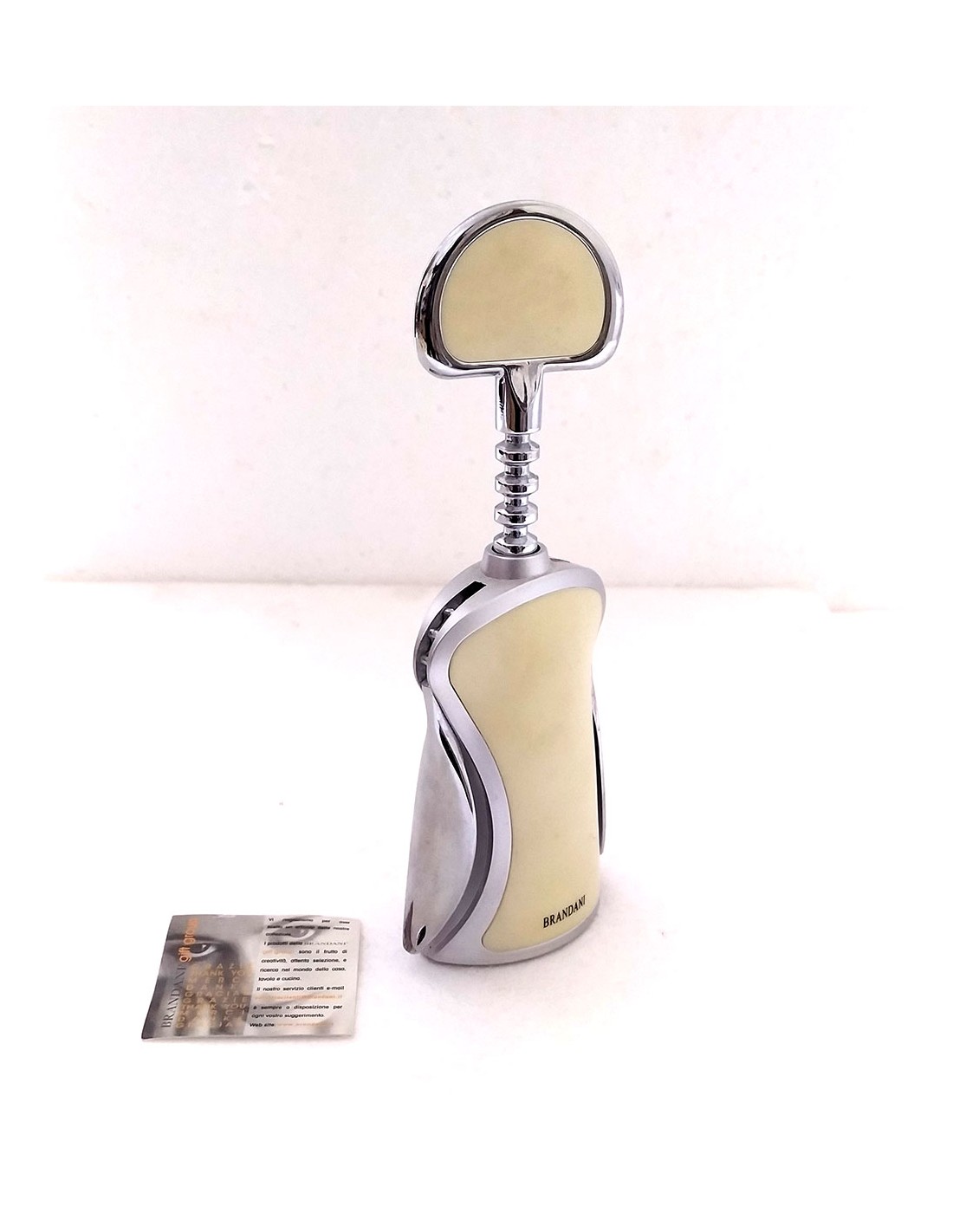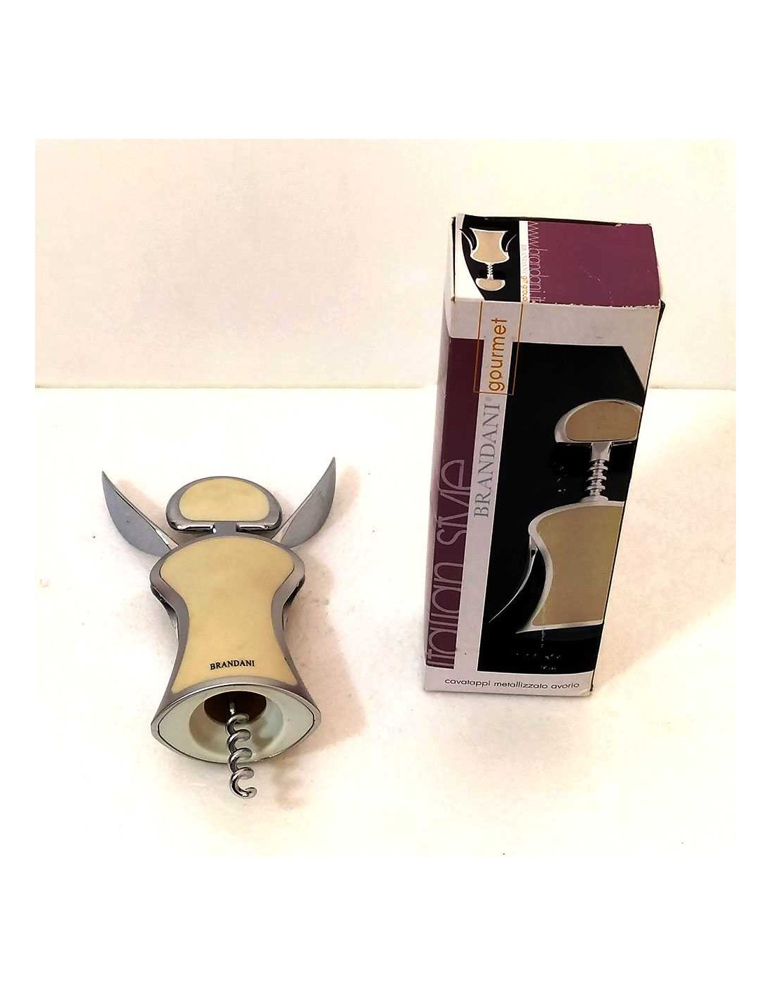 Cavatappi metallizzato avorio, per aprire bottiglie con tappi in sughero, bottiglie di vino, prosecco, spumanti.